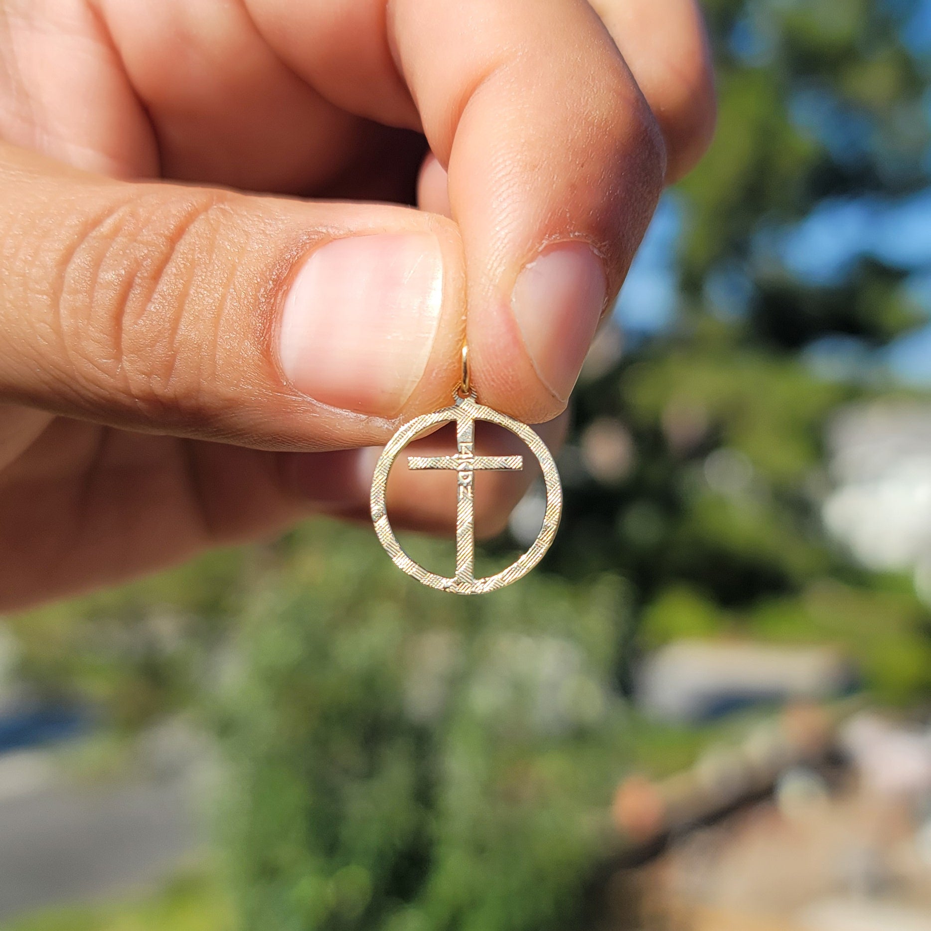 14K oder 18K Gold Kreuz im Kreis Anhänger