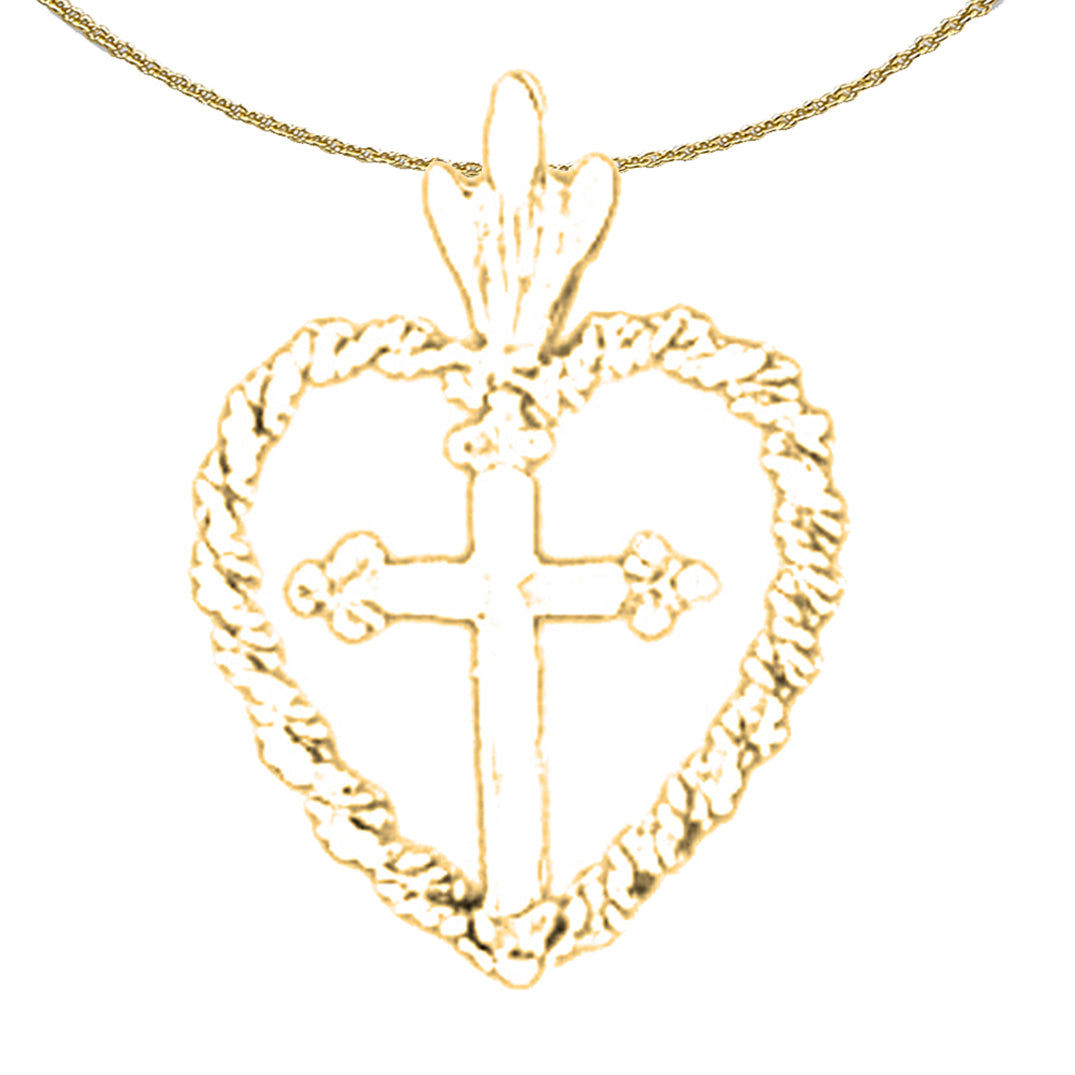 14K oder 18K Gold Kreuz im Herz Anhänger
