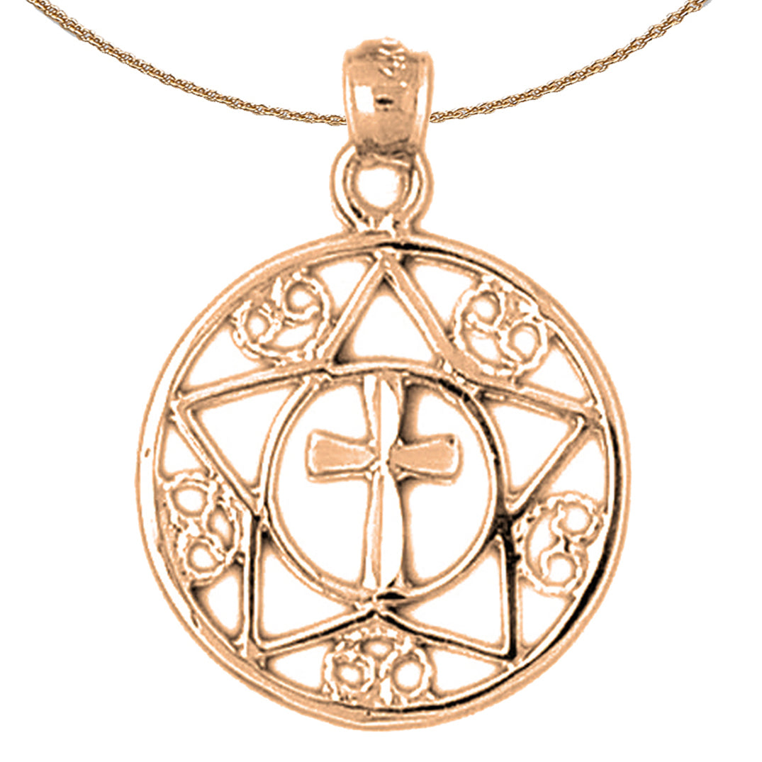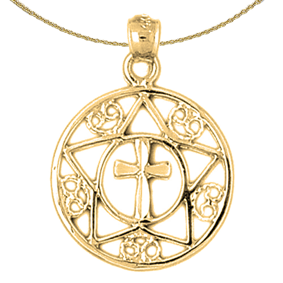 14K oder 18K Gold Kreuz in Stern und Kreis Anhänger