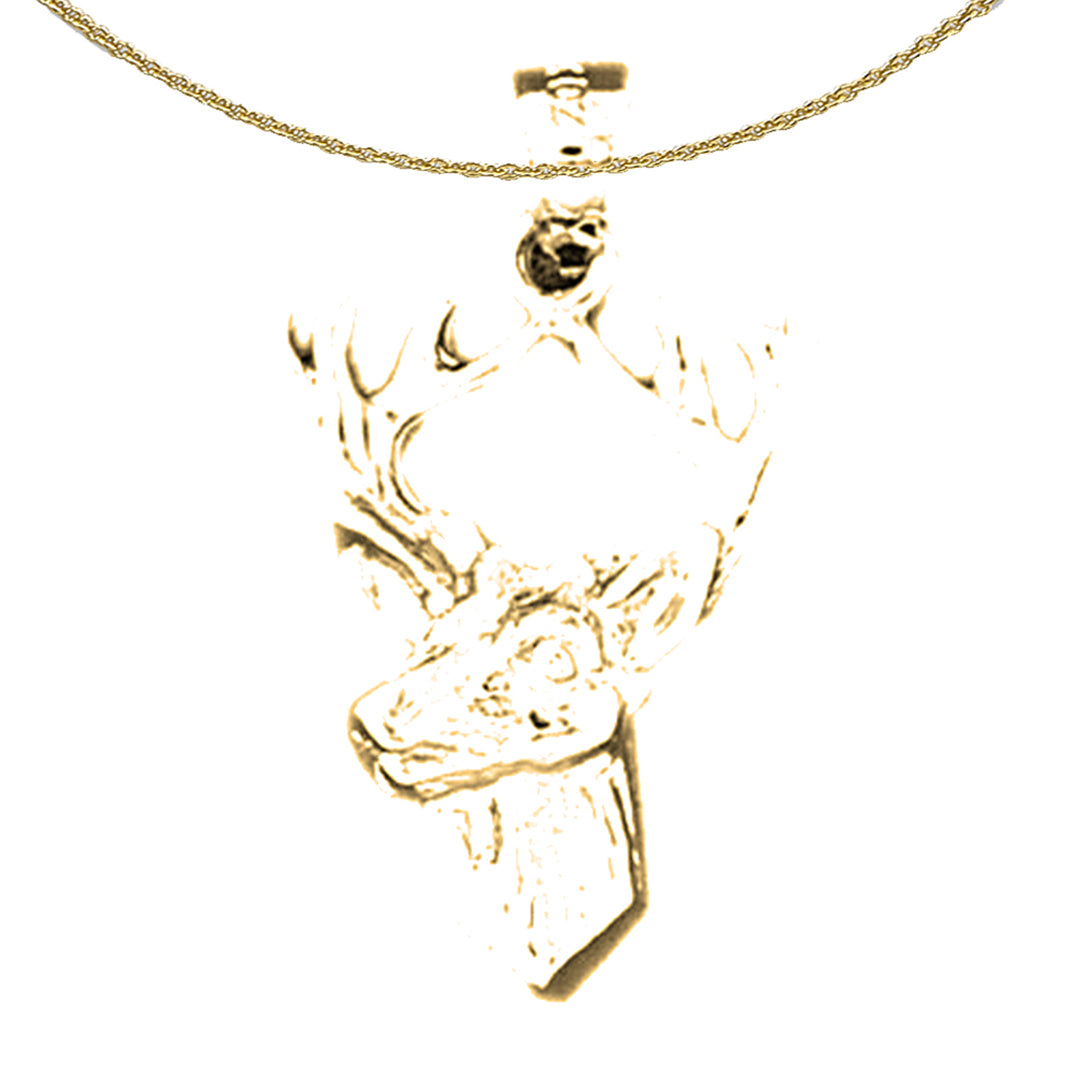 Dies ist ein eleganter Hirschanhänger aus 14- oder 18-karätigem Gold. Dieser Anhänger aus 14- oder 18-karätigem Gold ist 28 mm lang und 17 mm breit. Die Maße umfassen den Ring. JewelsObsession stellt alle Goldschmuckstücke in unserer hochmodernen Produktionsstätte her.