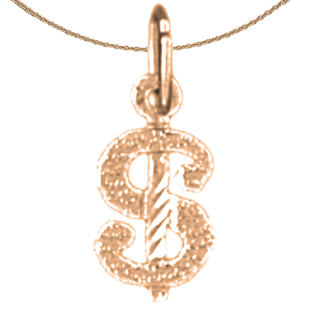 Dies ist ein eleganter Dollarzeichen-Anhänger aus 14- oder 18-karätigem Gold. Dieser Anhänger aus 14- oder 18-karätigem Gold misst 18 x 20 x 30 cm. Die Maße umfassen den Ring. JewelsObsession fertigt alle Goldschmuckstücke in unserer hochmodernen Produktionsstätte.