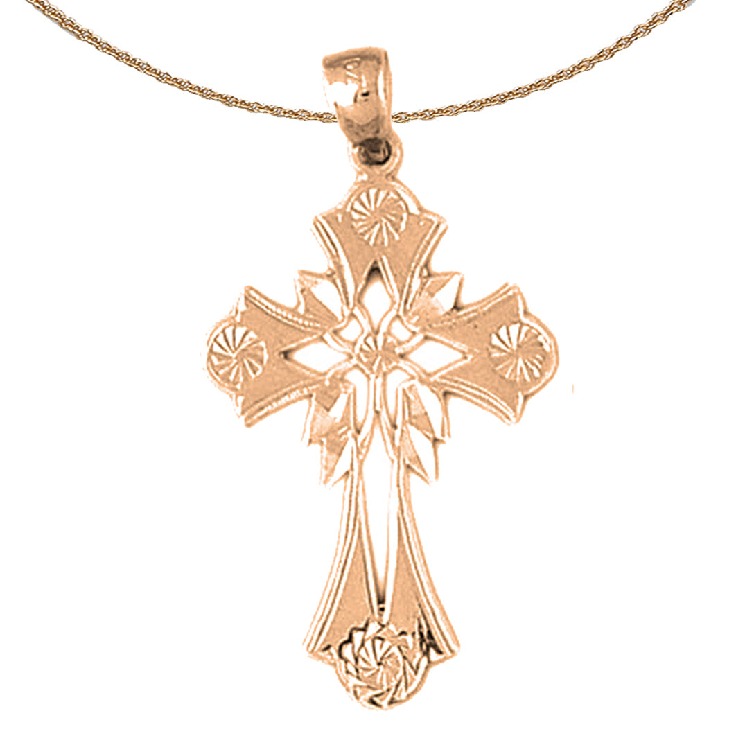 14K or 18K Gold Floral Cross Pendant