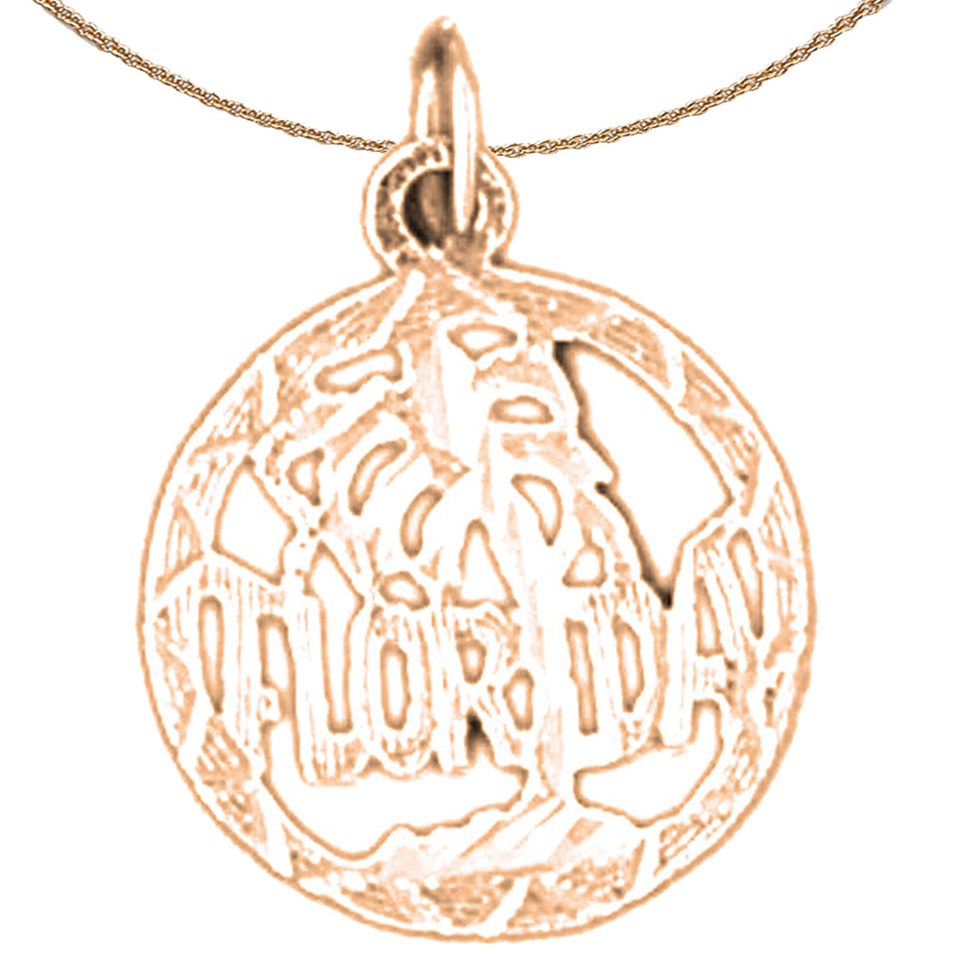 Dieser wunderschöne Florida-Anhänger aus 14- oder 18-karätigem Gold ist 19 mm lang und 14 mm breit. Die Maße umfassen den Ring. JewelsObsession fertigt alle Goldschmuckstücke in unserer hochmodernen Produktionsstätte.