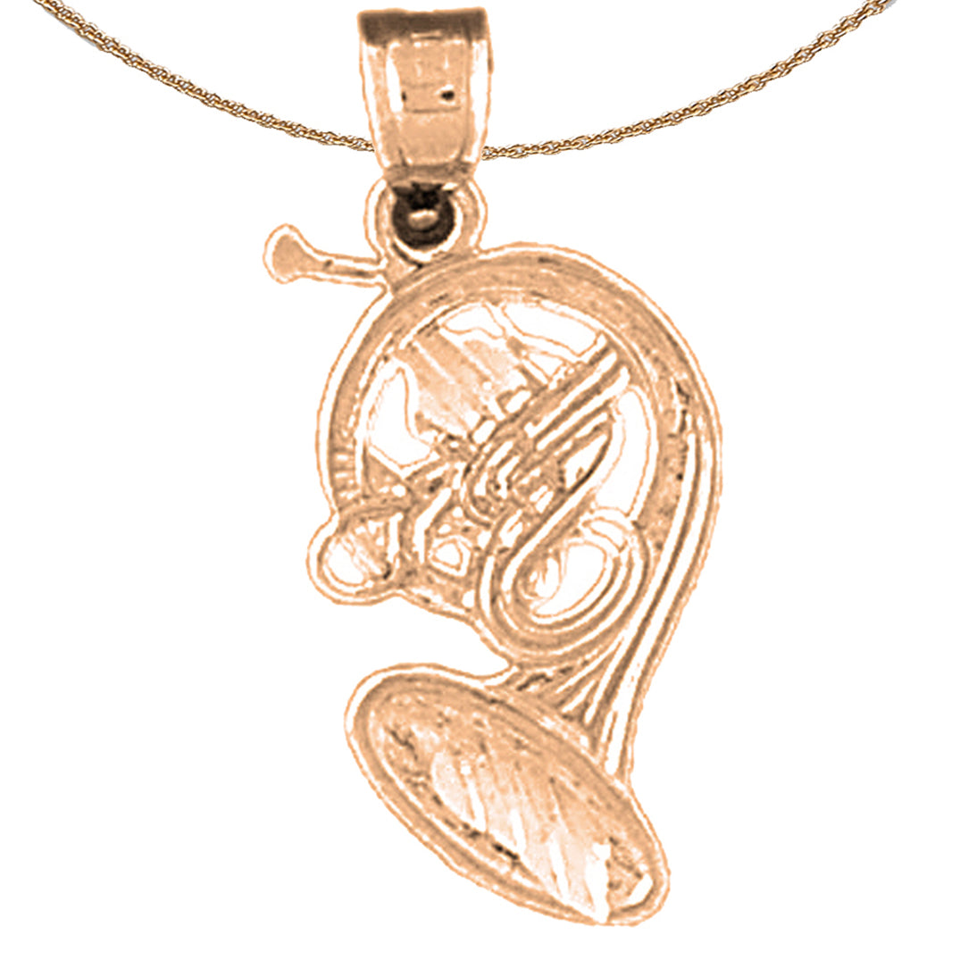 Dies ist ein eleganter Anhänger in Form eines Waldhorns aus 14- oder 18-karätigem Gold. Dieser Anhänger aus 14- oder 18-karätigem Gold ist 25 mm lang und 13 mm breit. Die Maße umfassen den Ring. JewelsObsession fertigt alle Goldschmuckstücke in unserer hochmodernen Produktionsstätte.
