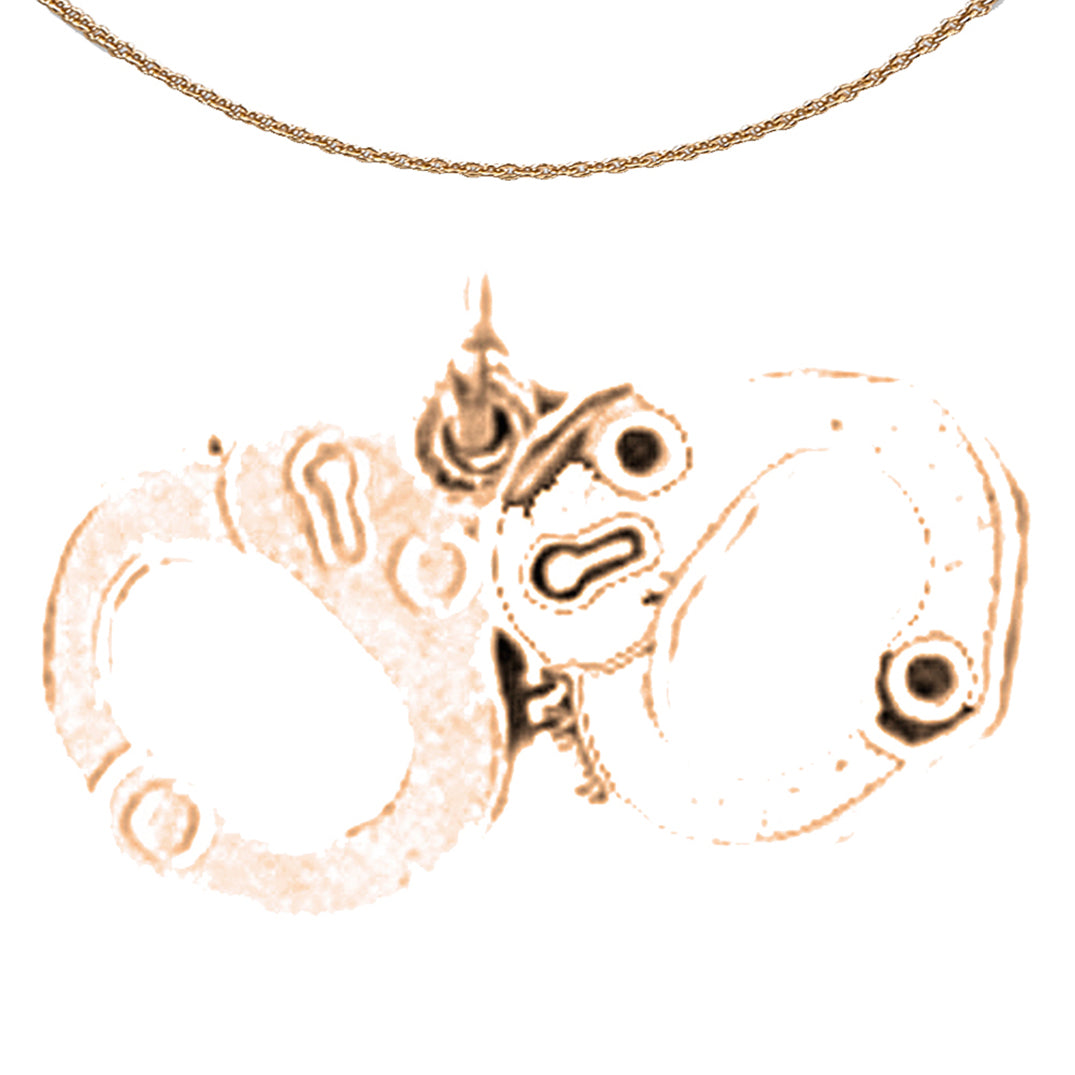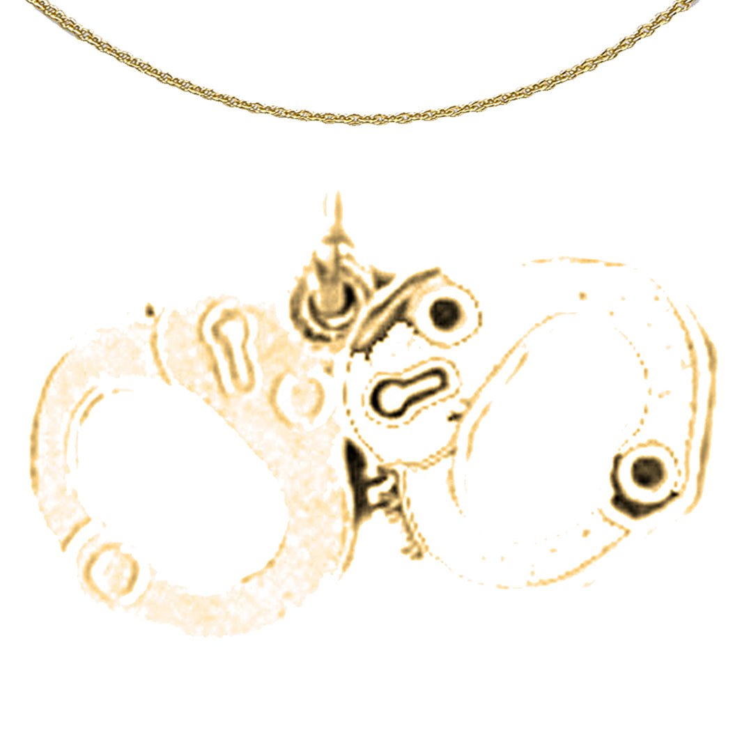 Dies ist ein wunderschöner Handschellenanhänger aus 14- oder 18-karätigem Gold. Dieser Anhänger aus 14- oder 18-karätigem Gold ist 13 mm lang und 17 mm breit. Die Maße umfassen den Ring. JewelsObsession fertigt sämtlichen Goldschmuck in unserer hochmodernen Produktionsstätte.