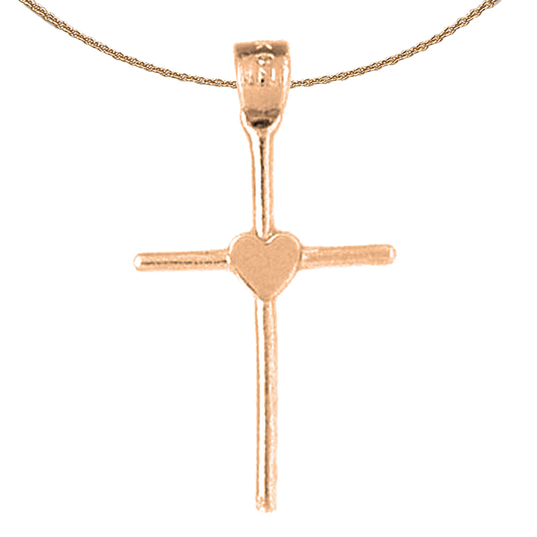 14K or 18K Gold Heart & Cross Pendant