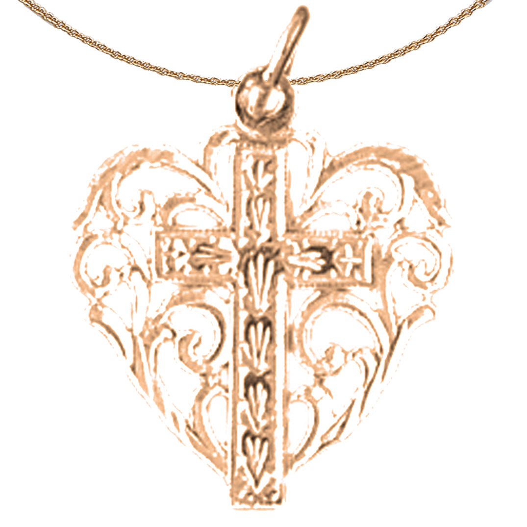 14K oder 18K Gold Herz mit Kreuz Anhänger