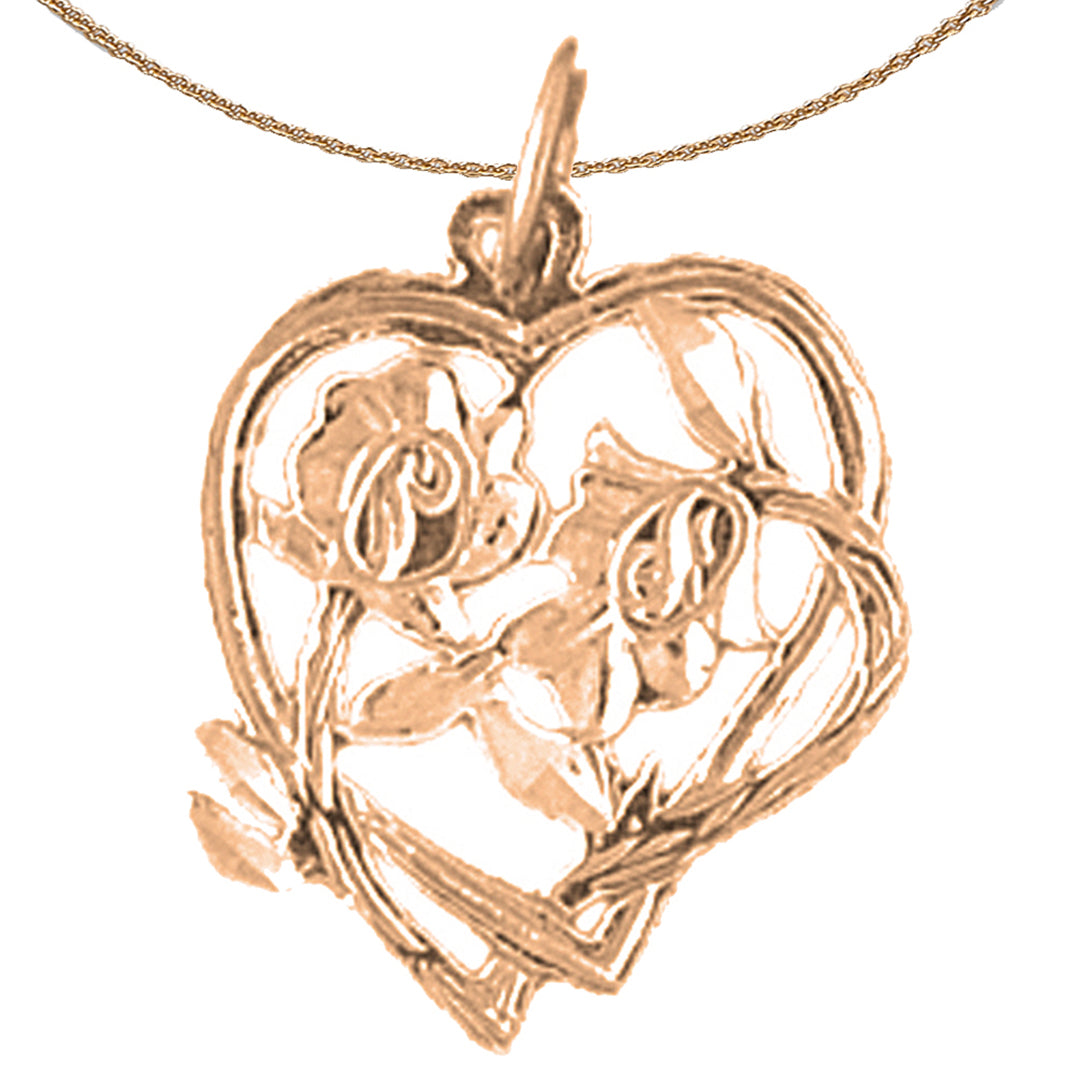 Dies ist ein eleganter Anhänger aus 14- oder 18-karätigem Gold mit Herz und Rose. Dieser Anhänger aus 14- oder 18-karätigem Gold ist 20 mm lang und 15 mm breit. Die Maße umfassen den Ring. JewelsObsession stellt alle Goldschmuckstücke in unserer hochmodernen Produktionsstätte her.