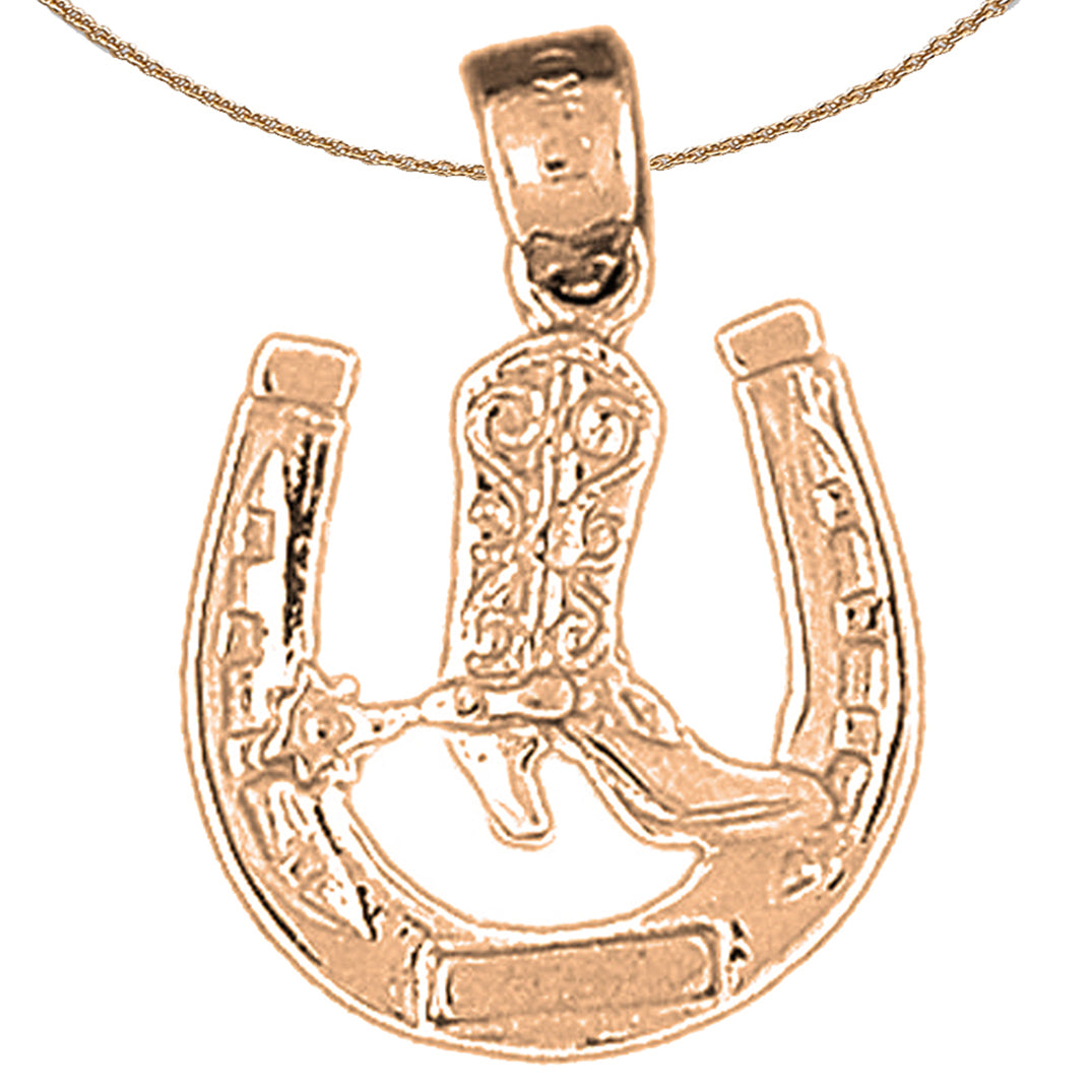 10K, 14K oder 18K Gold Hufeisen mit Cowboystiefel-Anhänger