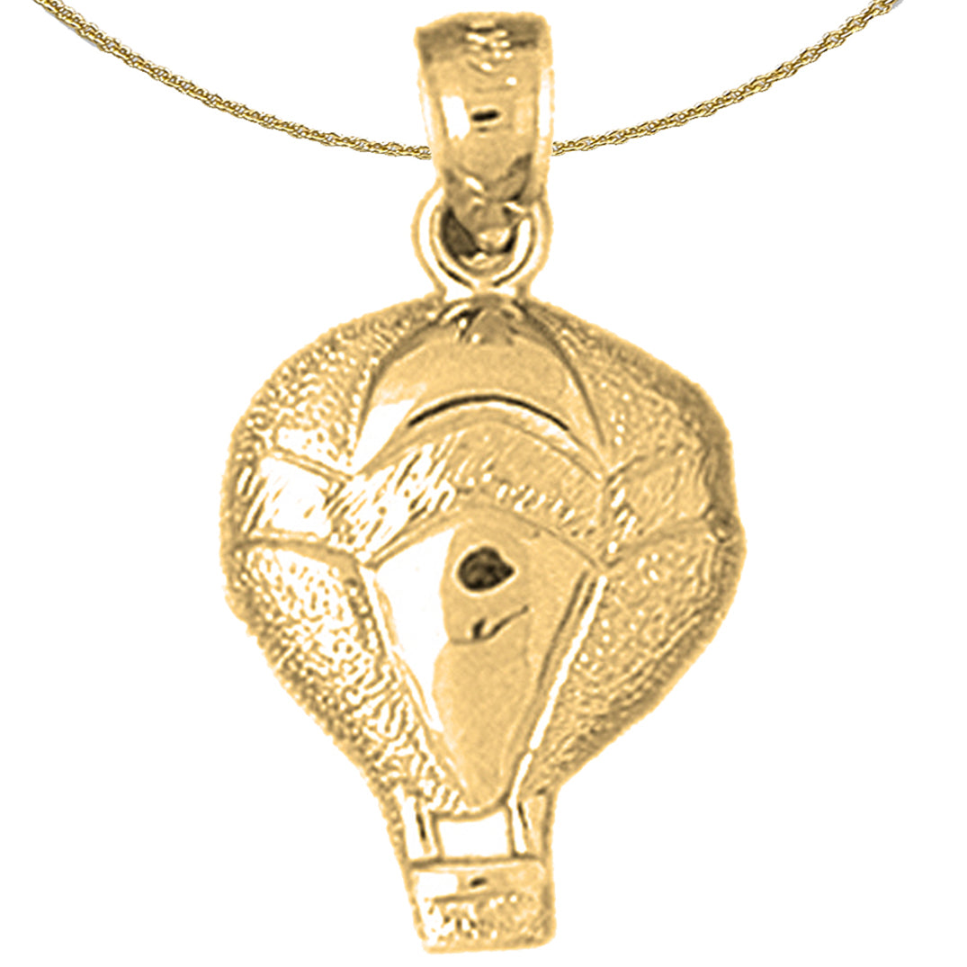 Dies ist ein eleganter Heißluftballon-Anhänger aus 14- oder 18-karätigem Gold. Dieser Anhänger aus 14- oder 18-karätigem Gold ist 25 mm lang und 14 mm breit. Die Maße umfassen den Ring. JewelsObsession fertigt alle Goldschmuckstücke in unserer hochmodernen Produktionsstätte.