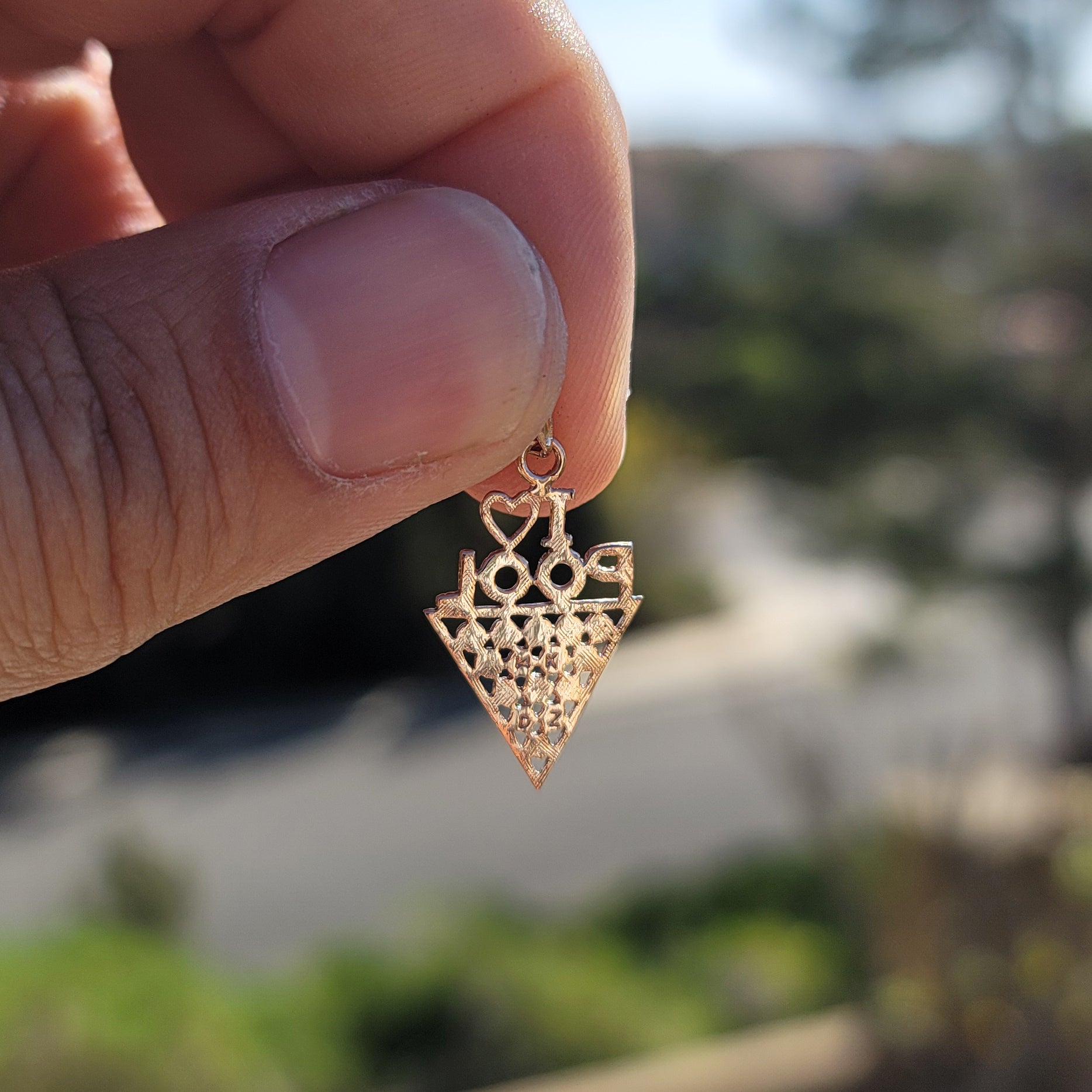 Dies ist ein eleganter Anhänger mit Spruch aus 14- oder 18-karätigem Gold. Dieser Anhänger aus 14- oder 18-karätigem Gold misst 18 x 20 x 30 cm. Die Maße umfassen den Ring. JewelsObsession stellt alle Goldschmuckstücke in unserer hochmodernen Produktionsstätte her.