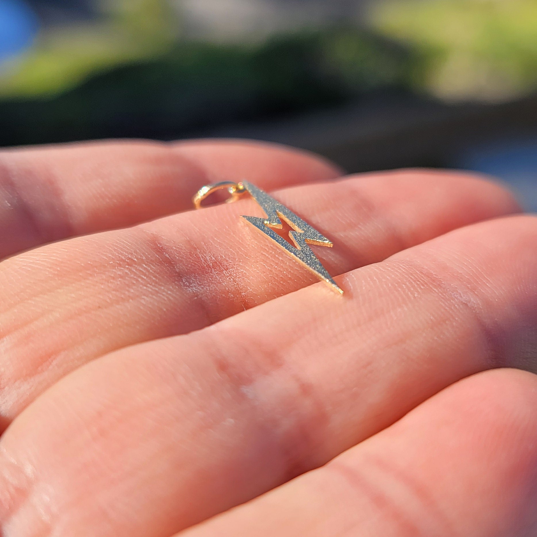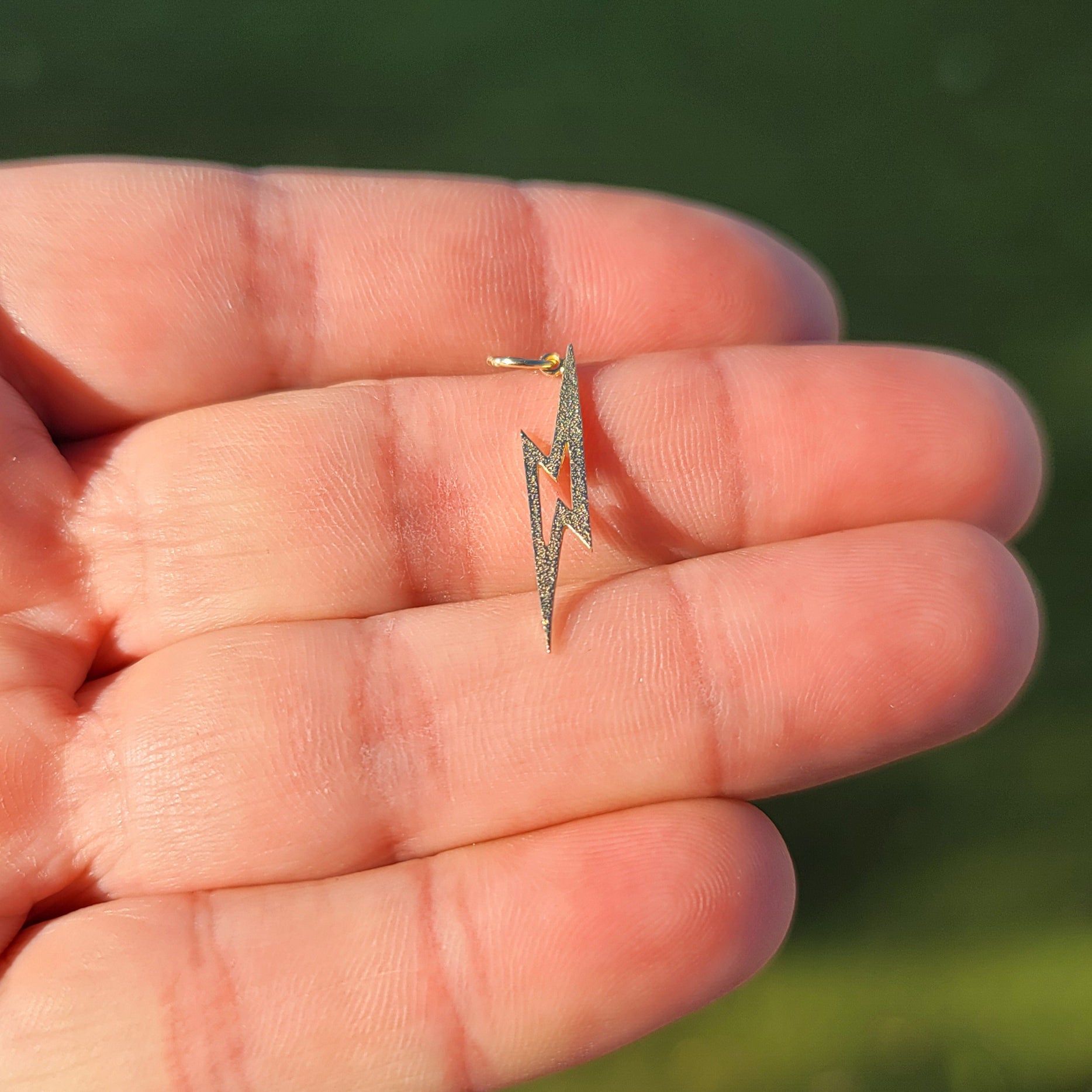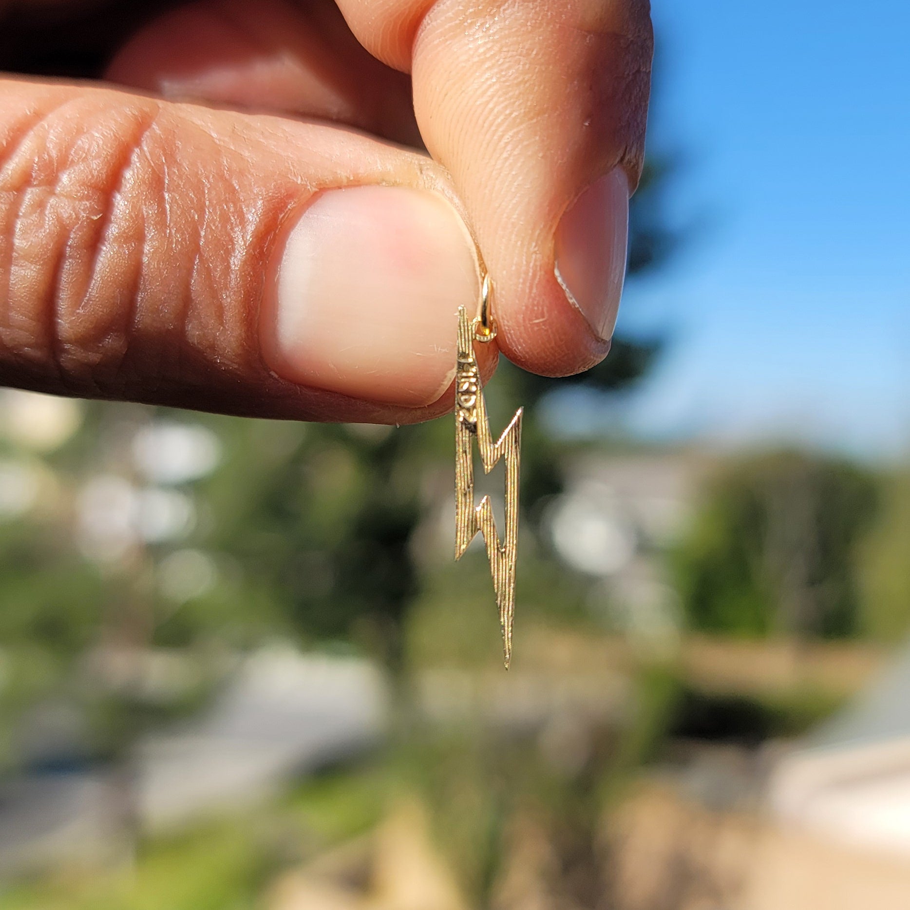 Dies ist ein eleganter Blitzanhänger aus 14- oder 18-karätigem Gold. Dieser Anhänger aus 14- oder 18-karätigem Gold ist 29 mm lang und 7 mm breit. Die Maße umfassen den Ring. JewelsObsession fertigt alle Goldschmuckstücke in unserer hochmodernen Produktionsstätte.