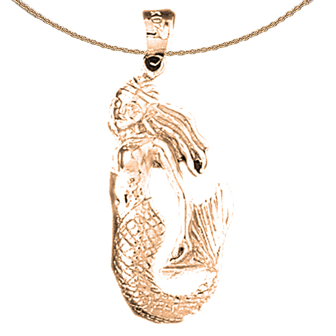 Dieser wunderschöne Meerjungfrauen-Anhänger aus 14- oder 18-karätigem Gold ist 36 mm lang und 16 mm breit. Die Maße umfassen den Ring. JewelsObsession fertigt alle Goldschmuckstücke in unserer hochmodernen Produktionsstätte.