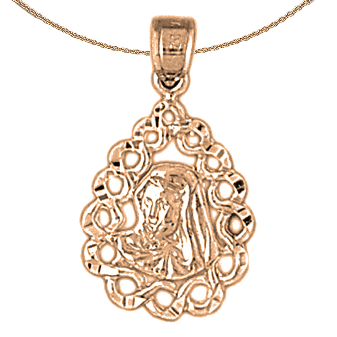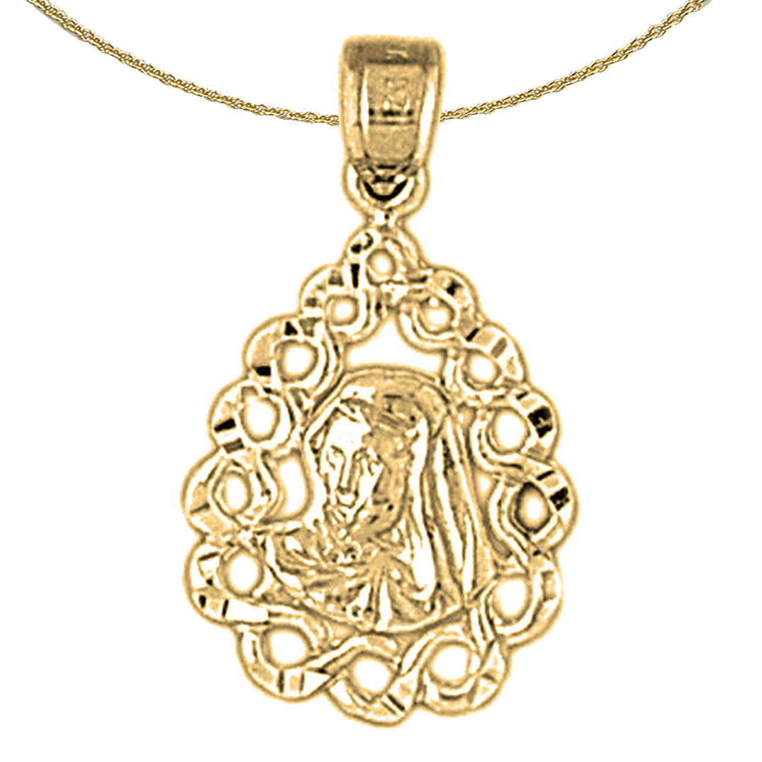 Dieser wunderschöne Anhänger aus 14- oder 18-karätigem Gold mit der Mutter Maria ist 25 mm lang und 15 mm breit. Die Maße umfassen den Ring. JewelsObsession fertigt alle Goldschmuckstücke in unserer hochmodernen Produktionsstätte.