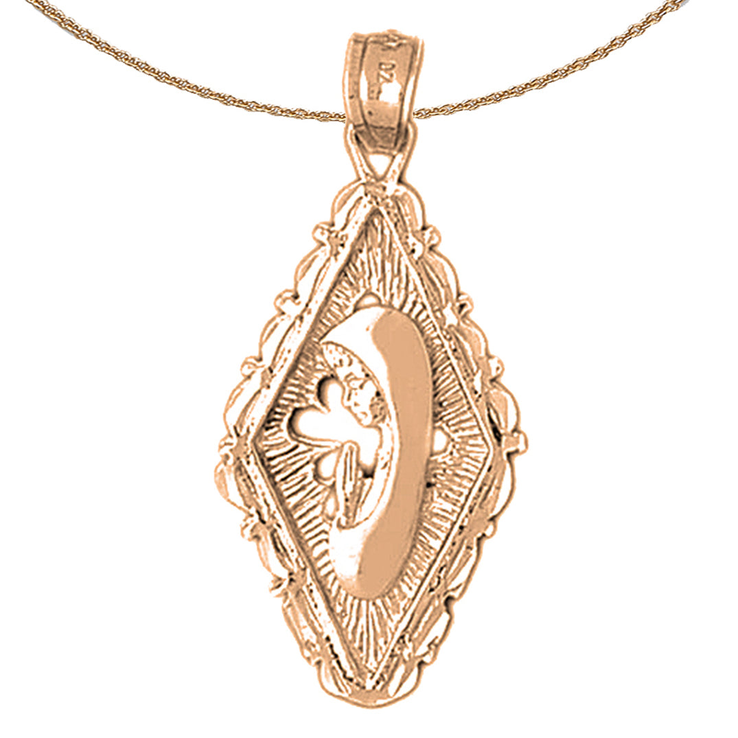 Dies ist ein eleganter Anhänger aus 10K, 14K oder 18K Gold mit der Mutter Maria und der betenden Frau. Dieser Anhänger aus 10K, 14K oder 18K Gold ist 42 mm lang und 20 mm breit. Die Maße umfassen den Ring. JewelsObsession fertigt alle Goldschmuckstücke in unserer hochmodernen Produktionsstätte.