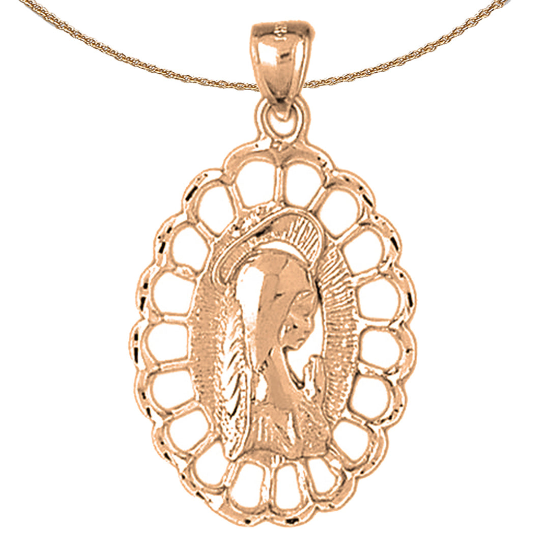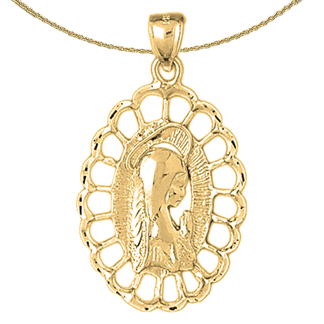 Dies ist ein atemberaubender Anhänger aus 10K, 14K oder 18K Gold mit der Mutter Maria und der betenden Frau. Dieser Anhänger aus 10K, 14K oder 18K Gold ist 40 mm lang und 23 mm breit. Die Maße umfassen den Ring. JewelsObsession stellt alle Goldschmuckstücke in unserer hochmodernen Produktionsstätte her.