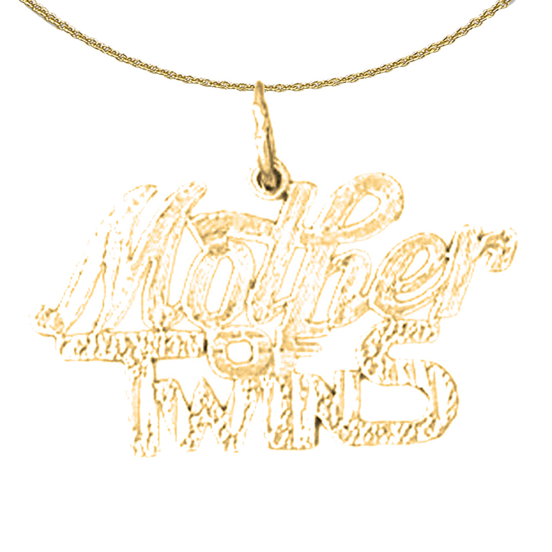 Dies ist ein wunderschöner Anhänger aus 14- oder 18-karätigem Gold mit der Aufschrift „Mutter von Zwillingen“. Dieser Anhänger aus 14- oder 18-karätigem Gold misst 18 x 20 x 30 cm. Die Maße umfassen den Ring. JewelsObsession fertigt alle Goldschmuckstücke in unserer hochmodernen Produktionsstätte.
