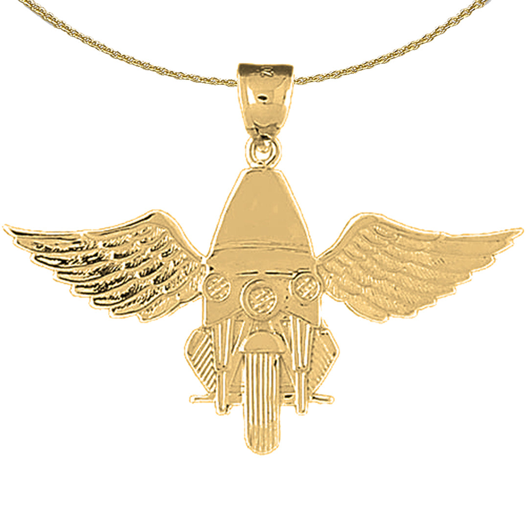 Dies ist ein eleganter Anhänger in Form eines Motorradoffiziers aus 10 K, 14 K oder 18 K Gold mit Flügeln. Dieser Anhänger aus 10 K, 14 K oder 18 K Gold ist 36 mm lang und 49 mm breit. Die Maße umfassen den Ring. JewelsObsession stellt alle Goldschmuckstücke in unserer hochmodernen Produktionsstätte her.