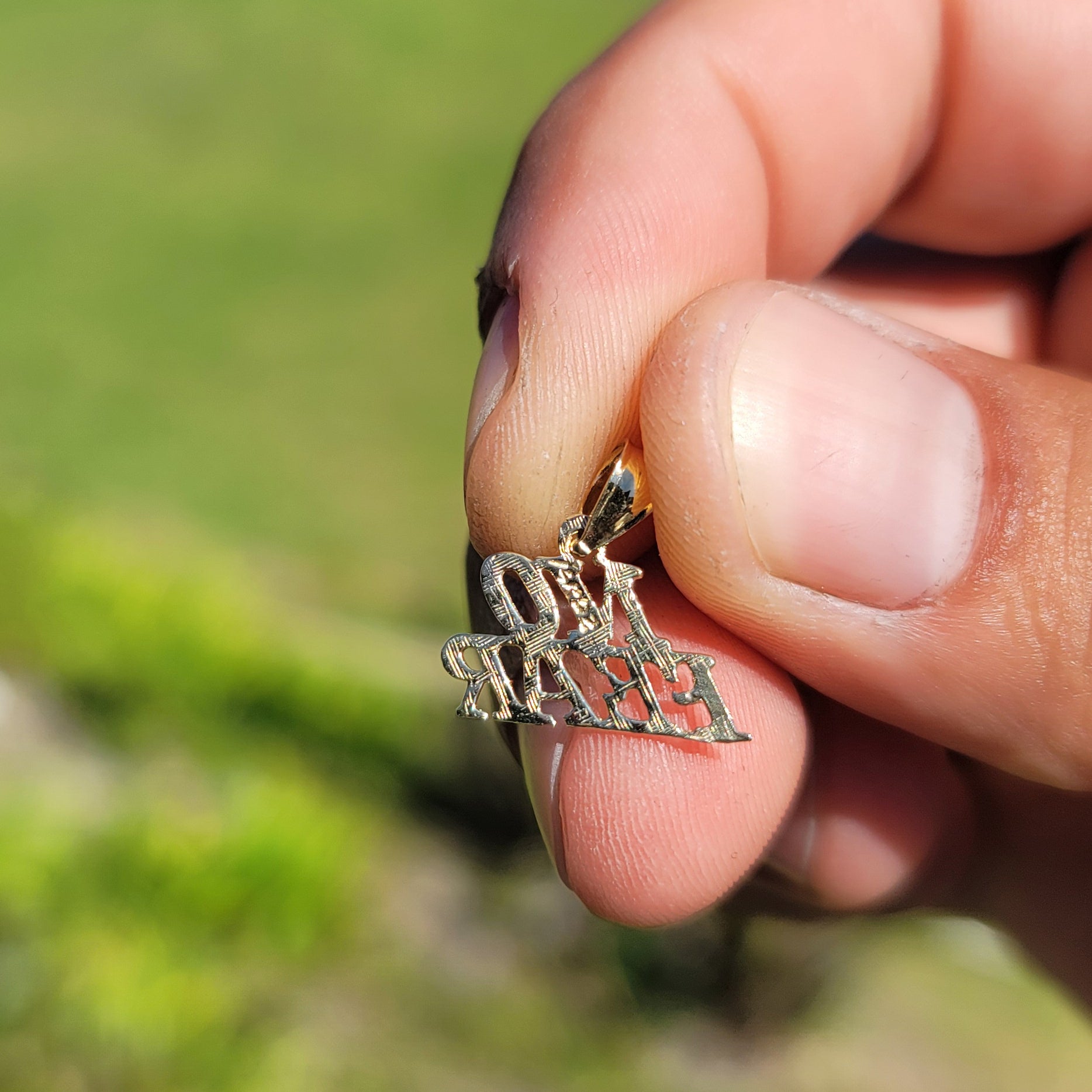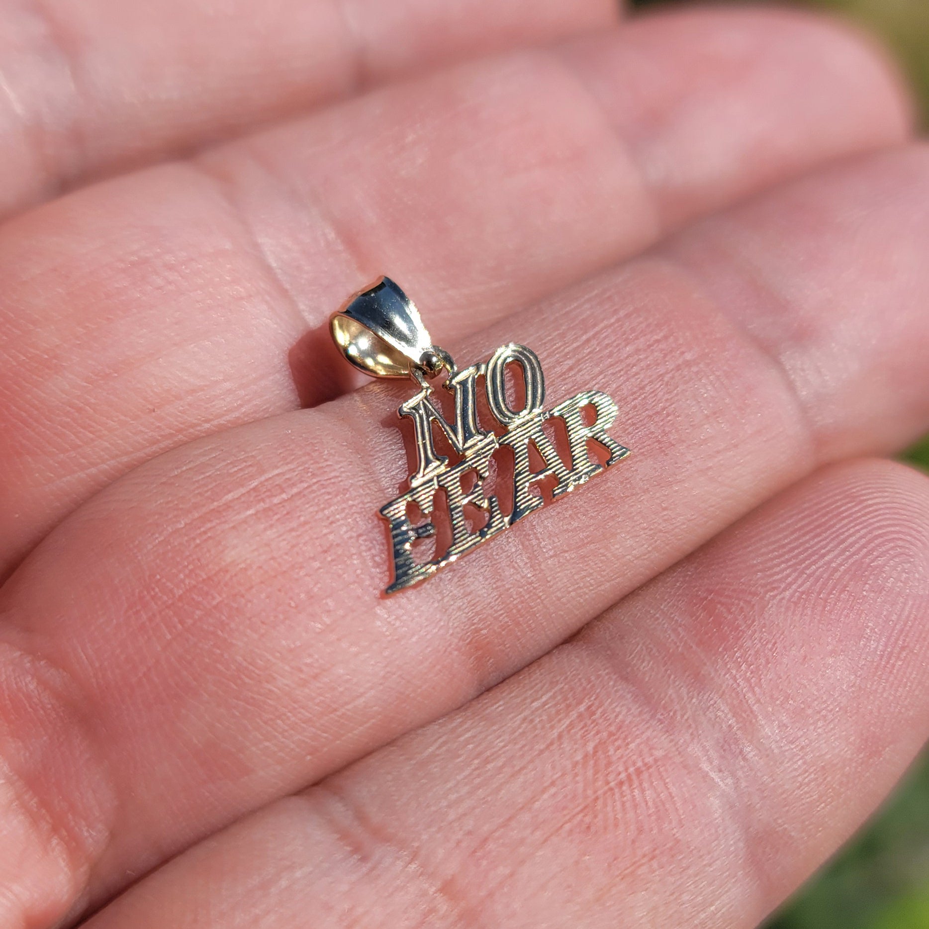 Anhänger mit dem Spruch „No Fear“ aus 14 Karat oder 18 Karat Gold