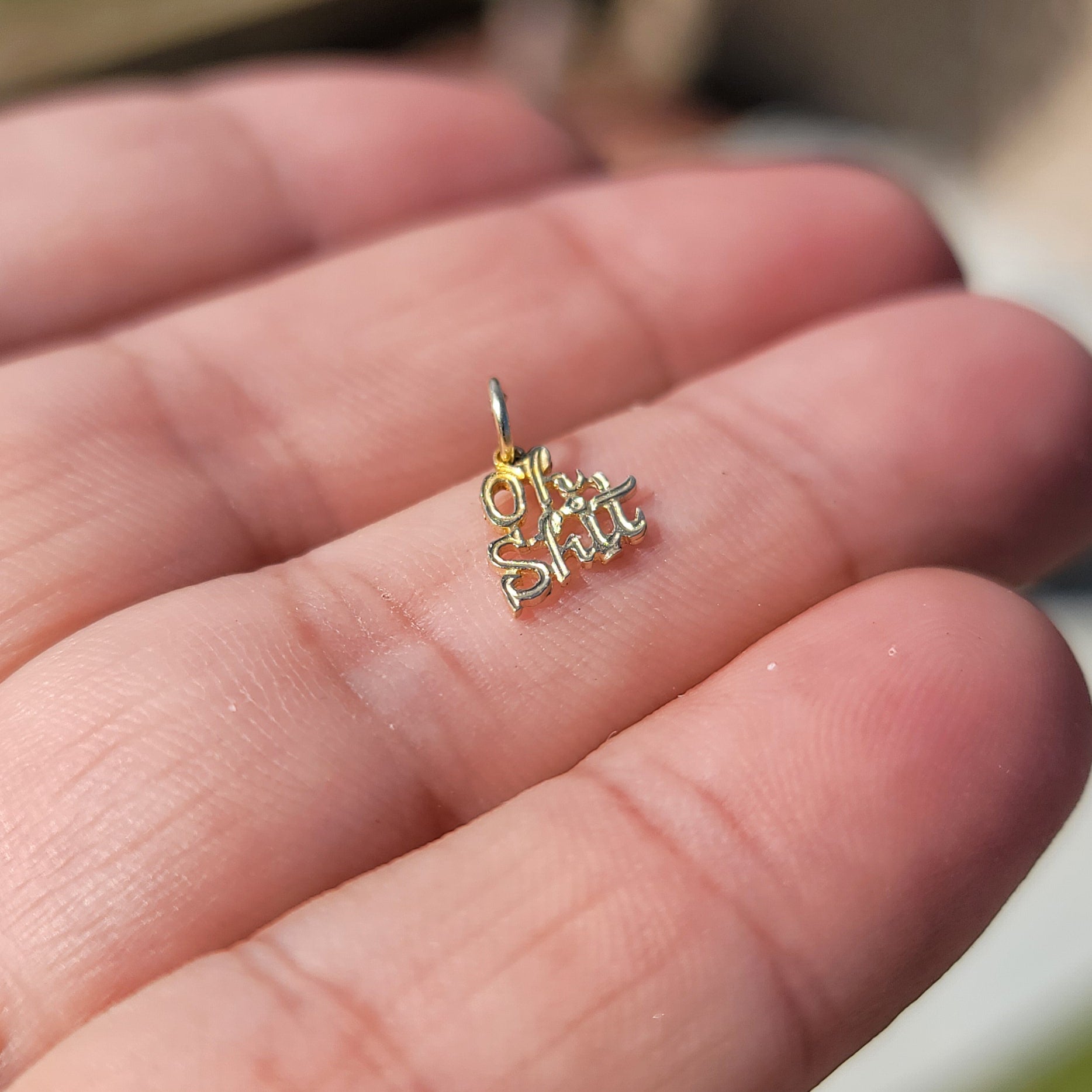 Anhänger mit „Oh Shit“-Spruch aus 14 Karat oder 18 Karat Gold