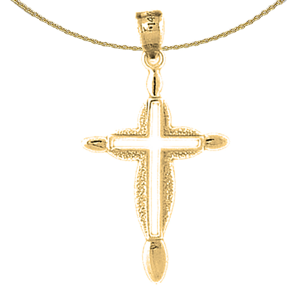 Dies ist ein atemberaubender Kreuzanhänger aus 14- oder 18-karätigem Gold. Dieser Anhänger aus 14- oder 18-karätigem Gold ist 36 mm lang und 19 mm breit. Die Maße umfassen den Ring. JewelsObsession stellt alle Goldschmuckstücke in unserer hochmodernen Produktionsstätte her.