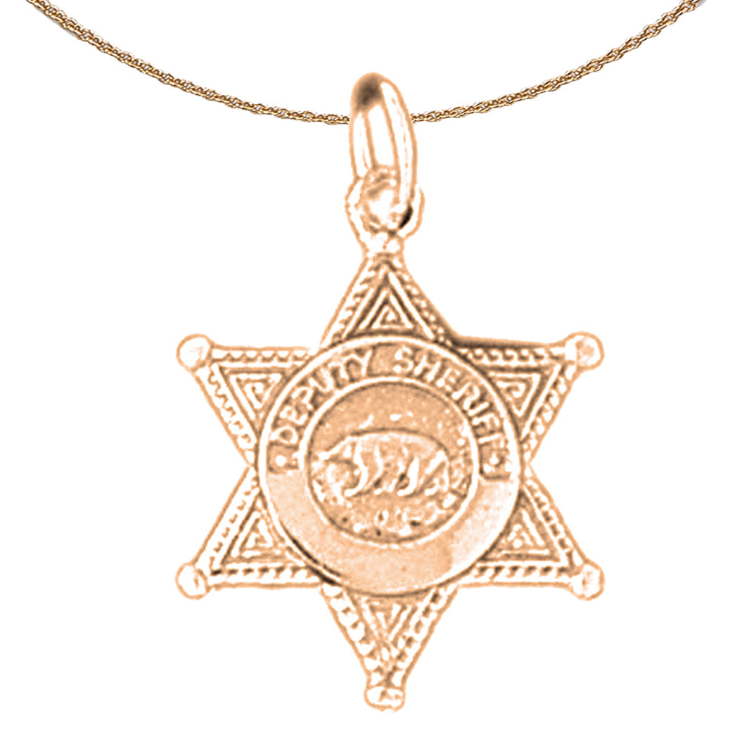 Dies ist ein eleganter Polizeiabzeichenanhänger aus 14- oder 18-karätigem Gold. Dieser Anhänger aus 14- oder 18-karätigem Gold ist 22 mm lang und 15 mm breit. Maße inkl. Bügel. JewelsObsession fertigt sämtlichen Goldschmuck in unserer hochmodernen Produktionsstätte.