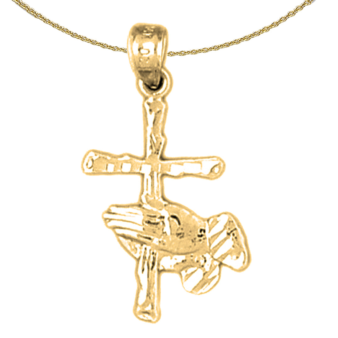 14K oder 18K Gold Anhänger „Betende Hände & Kreuz“