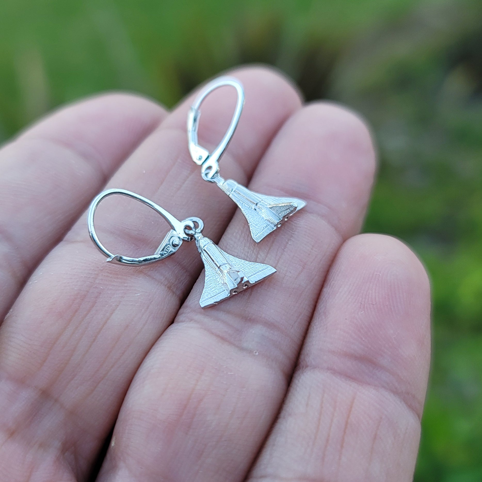 Dies ist ein eleganter Space-Shuttle-Anhänger aus 14- oder 18-karätigem Gold. Dieser Anhänger aus 14- oder 18-karätigem Gold ist 18 mm lang und 11 mm breit. Die Maße umfassen den Ring. JewelsObsession stellt alle Goldschmuckstücke in unserer hochmodernen Produktionsstätte her.