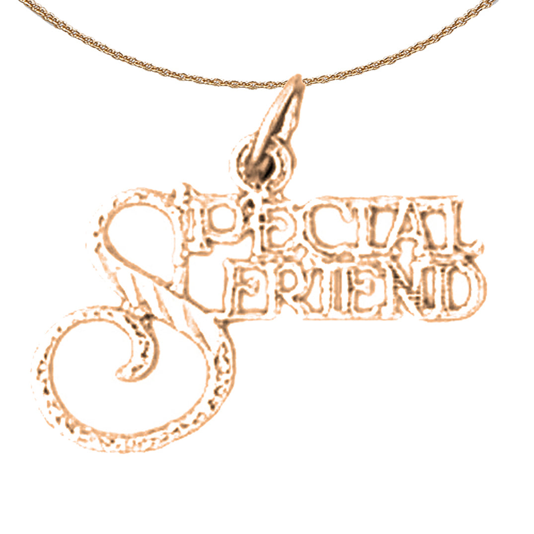 Dies ist ein atemberaubender Anhänger aus 14- oder 18-karätigem Gold mit dem Namen „Special Friend“. Dieser Anhänger aus 14- oder 18-karätigem Gold misst 18 x 20 x 30 cm. Die Maße umfassen den Ring. JewelsObsession fertigt alle Goldschmuckstücke in unserer hochmodernen Produktionsstätte.