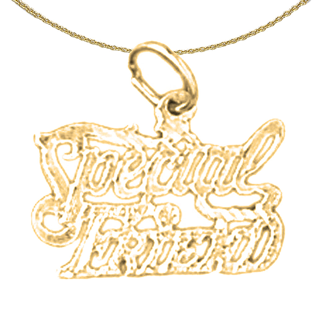 Dies ist ein atemberaubender Anhänger aus 14- oder 18-karätigem Gold mit dem Namen „Special Friend“. Dieser Anhänger aus 14- oder 18-karätigem Gold misst 18 x 20 x 30 cm. Die Maße umfassen den Ring. JewelsObsession fertigt alle Goldschmuckstücke in unserer hochmodernen Produktionsstätte.
