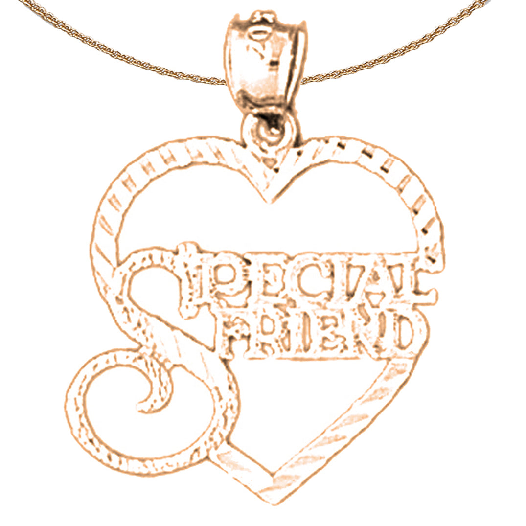 Dies ist ein atemberaubender Anhänger aus 14- oder 18-karätigem Gold mit dem Namen „Special Friend“. Dieser Anhänger aus 14- oder 18-karätigem Gold misst 18 x 20 x 30 cm. Die Maße umfassen den Ring. JewelsObsession fertigt alle Goldschmuckstücke in unserer hochmodernen Produktionsstätte.
