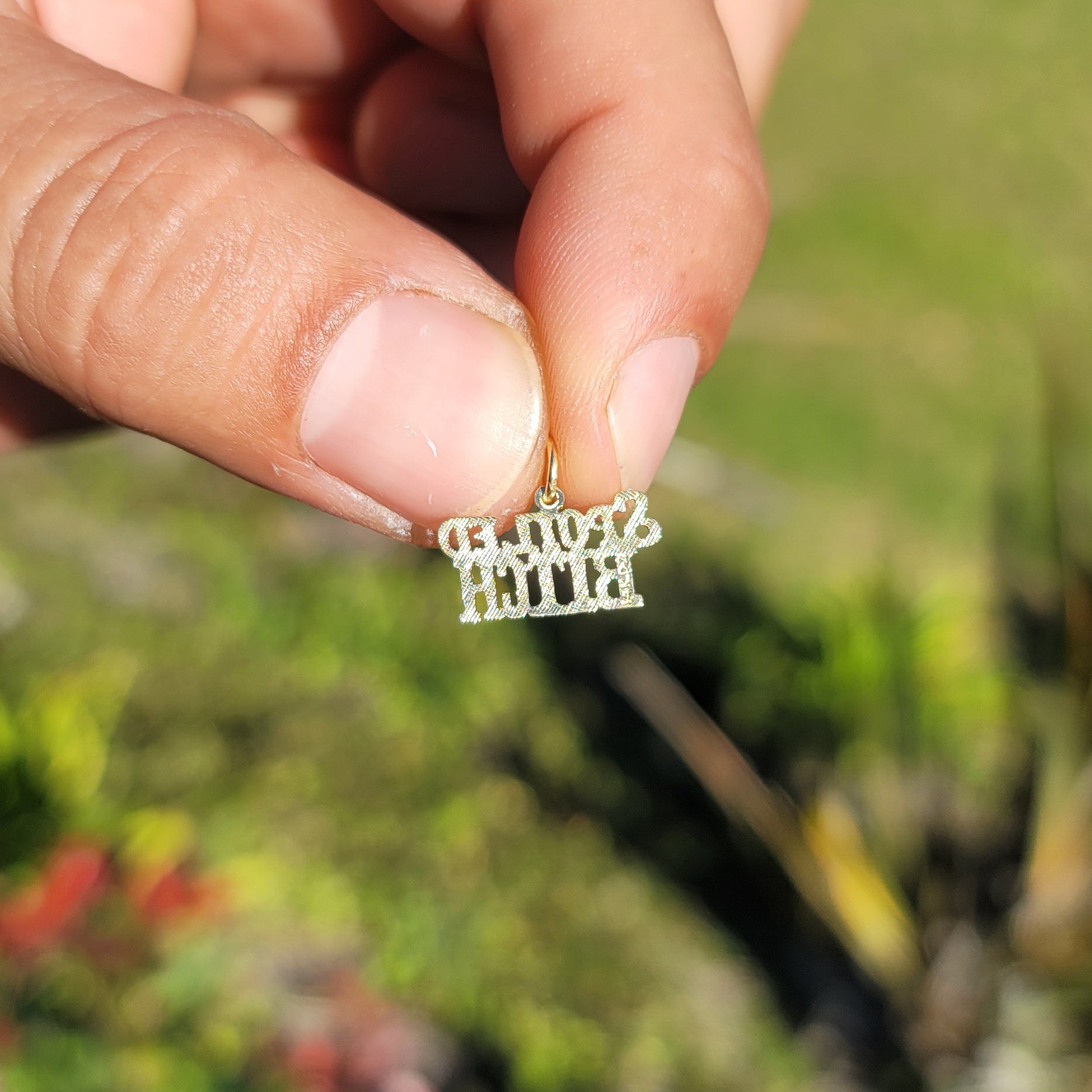 Dies ist ein wunderschöner Anhänger mit einem Spruch aus 14- oder 18-karätigem Gold. Dieser Anhänger aus 14- oder 18-karätigem Gold misst 18 x 20 x 30 cm. Die Maße umfassen den Ring. JewelsObsession stellt alle Goldschmuckstücke in unserer hochmodernen Produktionsstätte her.