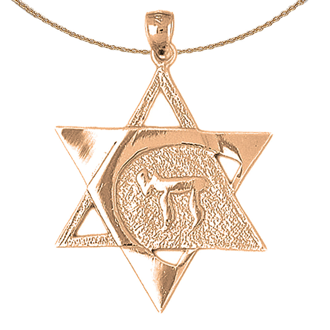 10K, 14K or 18K Gold Star of David with Chai Pendant