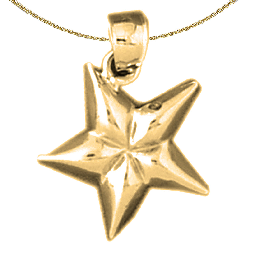Dies ist ein eleganter Sternanhänger aus 14- oder 18-karätigem Gold. Dieser Anhänger aus 14- oder 18-karätigem Gold ist 22 mm lang und 17 mm breit. Die Maße umfassen den Ring. JewelsObsession stellt alle Goldschmuckstücke in unserer hochmodernen Produktionsstätte her.