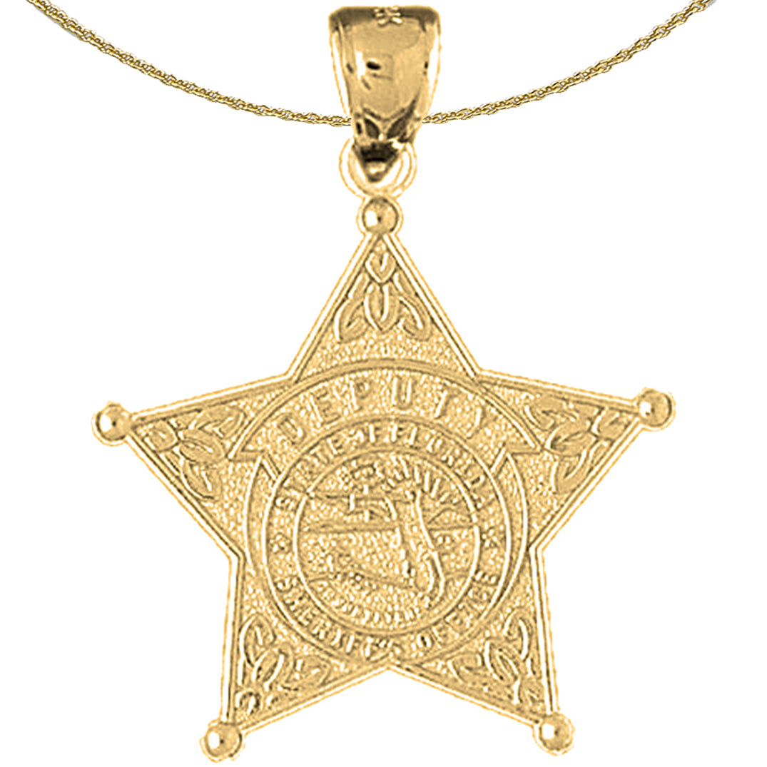 Dieser wunderschöne Anhänger aus 10K, 14K oder 18K Gold mit dem Sheriff-Department des Staates Florida. Dieser Anhänger aus 10K, 14K oder 18K Gold ist 32 mm lang und 26 mm breit. Die Maße umfassen den Ring. JewelsObsession stellt alle Goldschmuckstücke in unserer hochmodernen Produktionsstätte her.