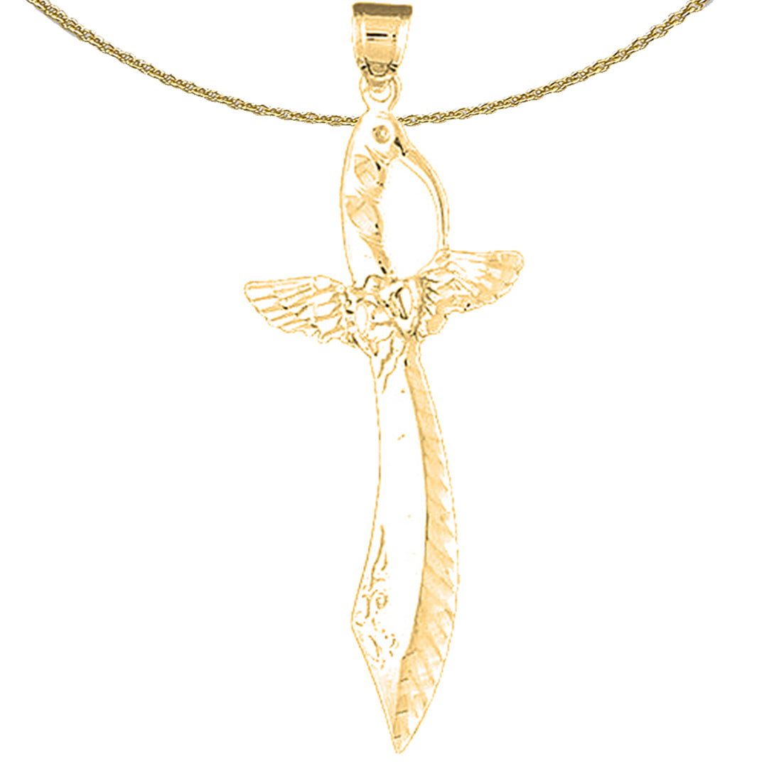 Dies ist ein eleganter Schwertanhänger aus 10K, 14K oder 18K Gold. Dieser Anhänger aus 10K, 14K oder 18K Gold ist 65 mm lang und 25 mm breit. Die Maße umfassen den Ring. JewelsObsession stellt alle Goldschmuckstücke in unserer hochmodernen Produktionsstätte her.