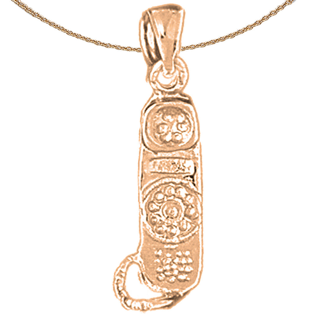 Dies ist ein eleganter Telefonanhänger aus 14- oder 18-karätigem Gold. Dieser Anhänger aus 14- oder 18-karätigem Gold ist 26 mm lang und 7 mm breit. Die Maße umfassen den Ring. JewelsObsession fertigt alle Goldschmuckstücke in unserer hochmodernen Produktionsstätte.