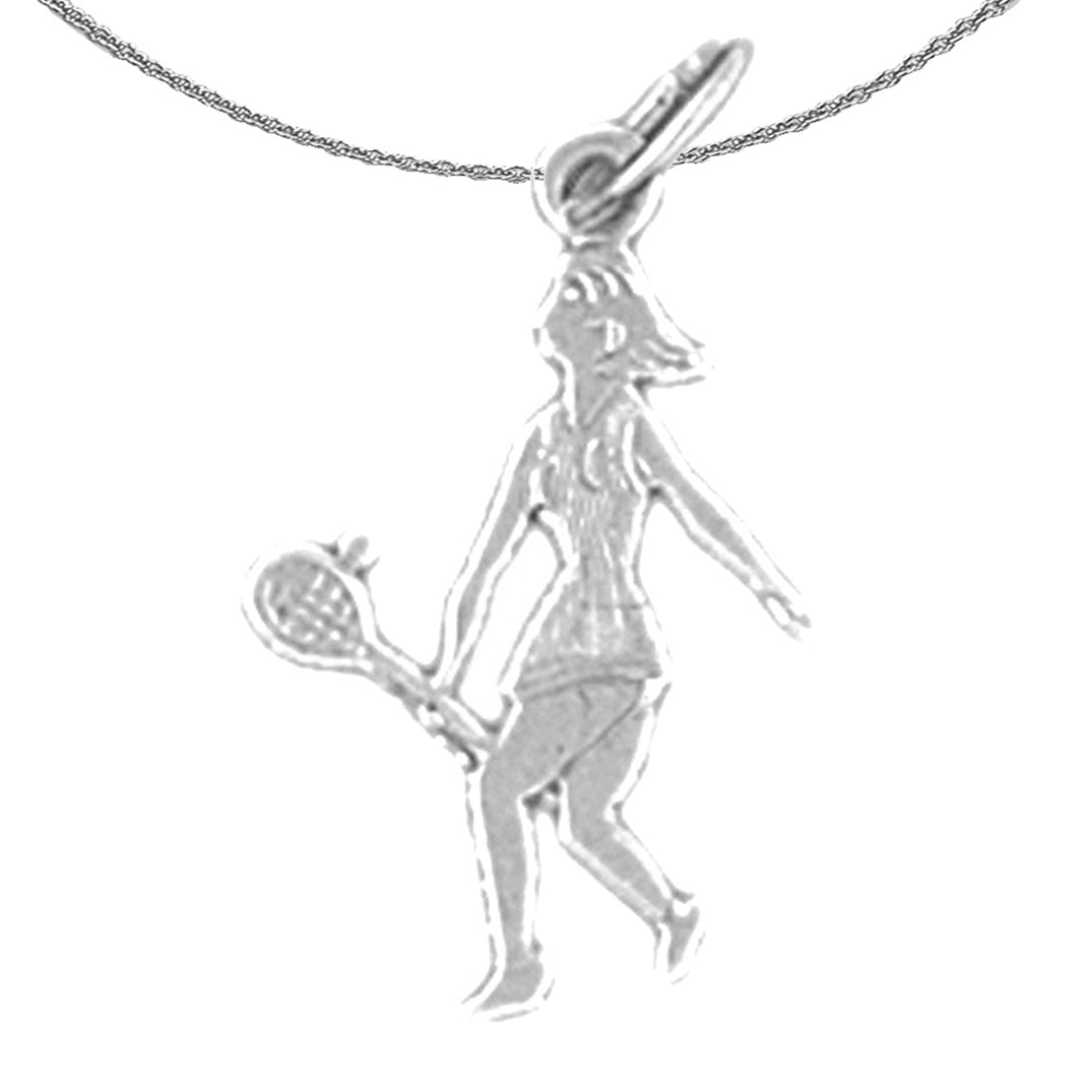 Dies ist ein wunderschöner Tennisspieler-Anhänger aus 14- oder 18-karätigem Gold. Dieser Anhänger aus 14- oder 18-karätigem Gold ist 20 mm lang und 12 mm breit. Die Maße umfassen den Ring. JewelsObsession stellt alle Goldschmuckstücke in unserer hochmodernen Produktionsstätte her.