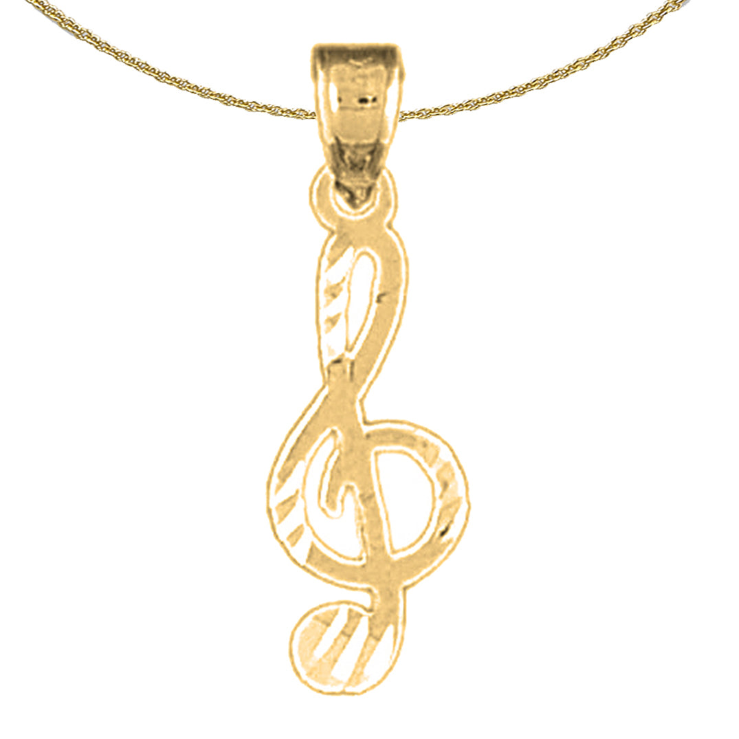 Dies ist ein eleganter Anhänger mit Violinschlüssel aus 14- oder 18-karätigem Gold. Dieser Anhänger aus 14- oder 18-karätigem Gold ist 24 mm lang und 8 mm breit. Die Maße umfassen den Ring. JewelsObsession fertigt alle Goldschmuckstücke in unserer hochmodernen Produktionsstätte.