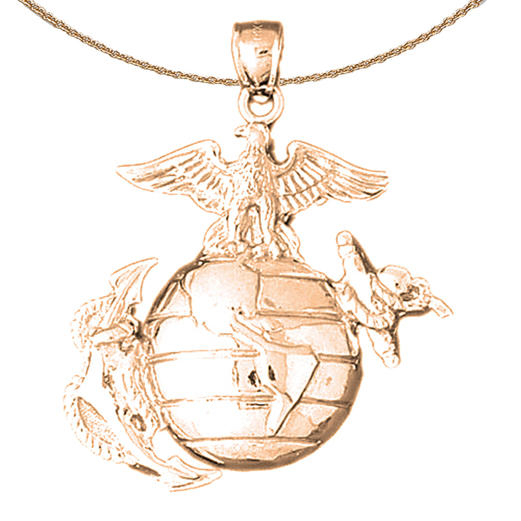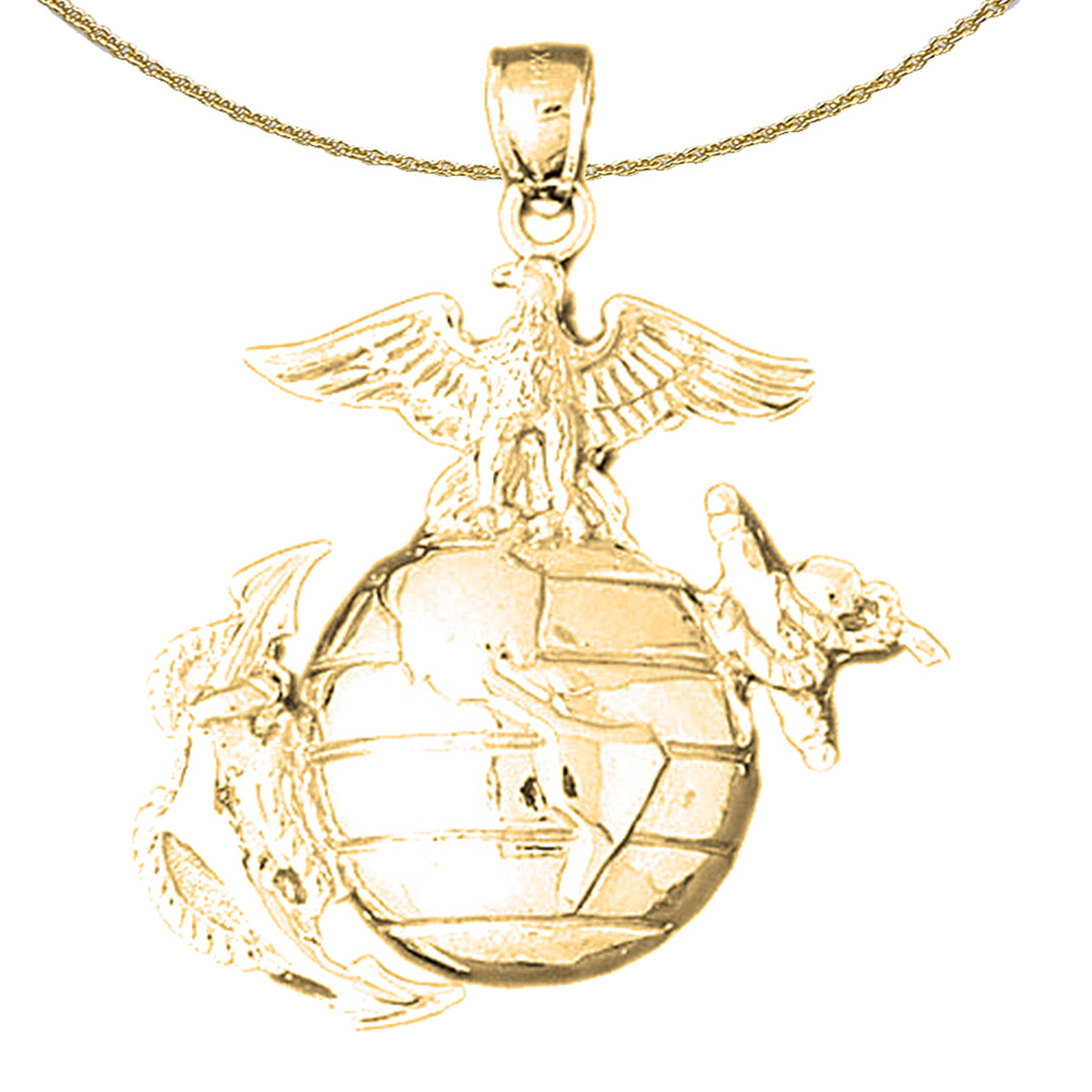 14K or 18K Gold US Marines Eagle On Earth Pendant