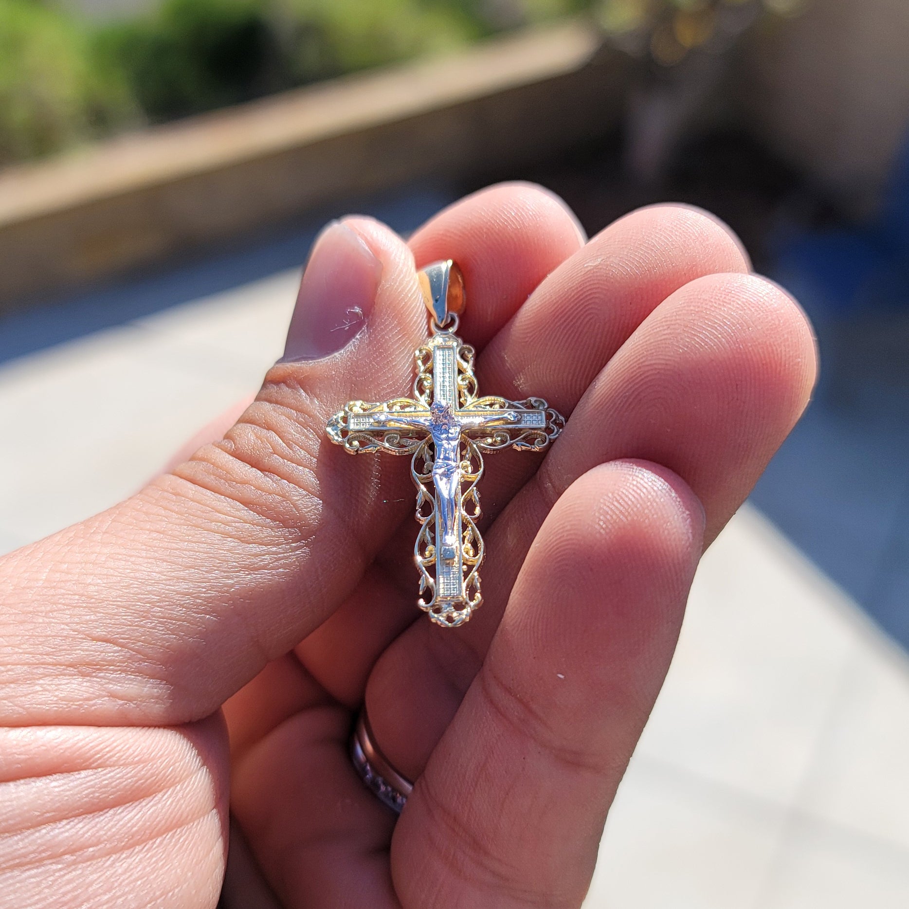 10K, 14K or 18K Gold Vine Crucifix Pendant