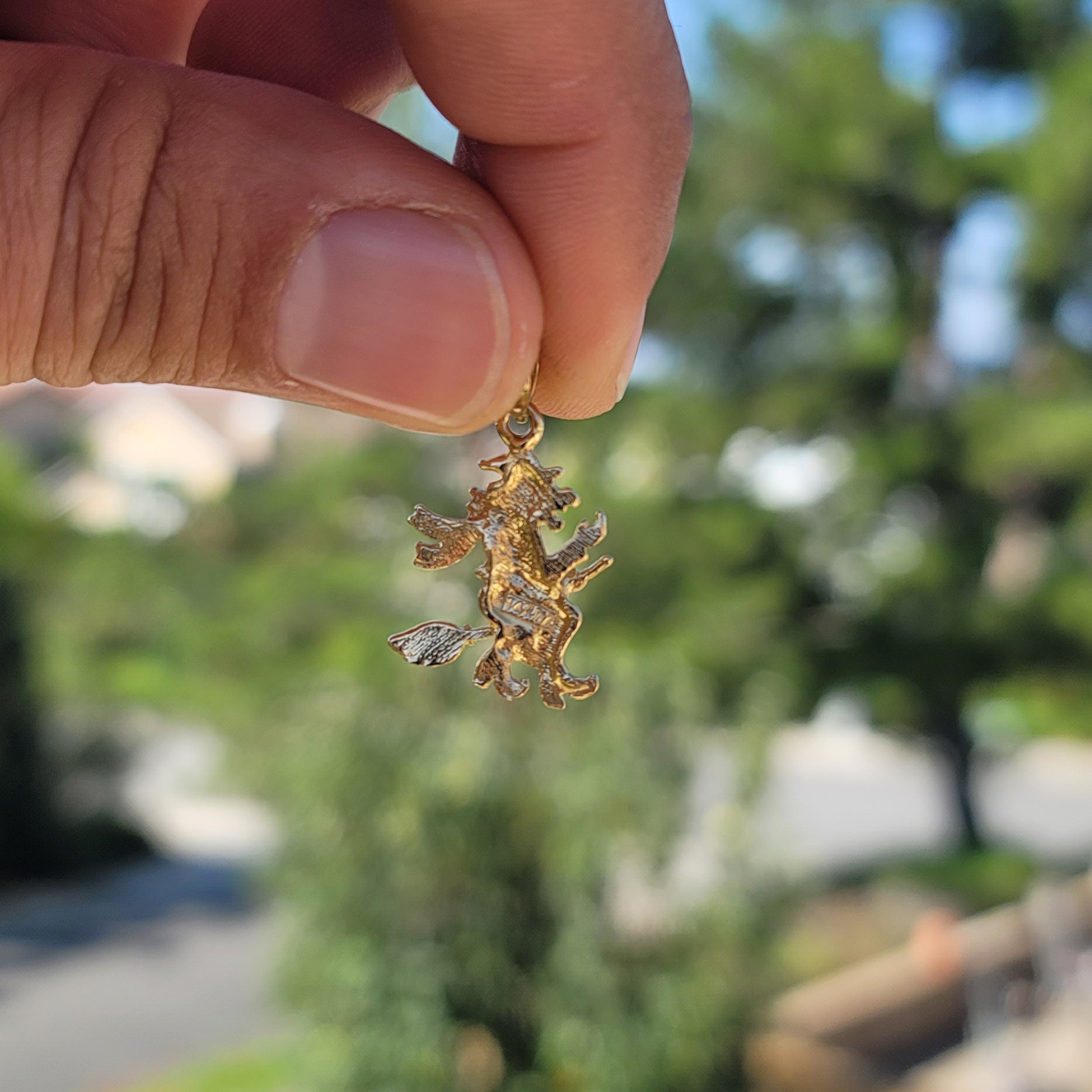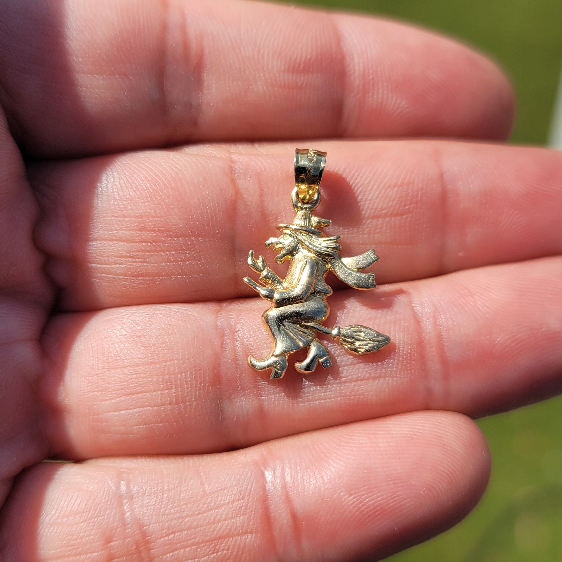 10K, 14K or 18K Gold Witch On Broom Pendant