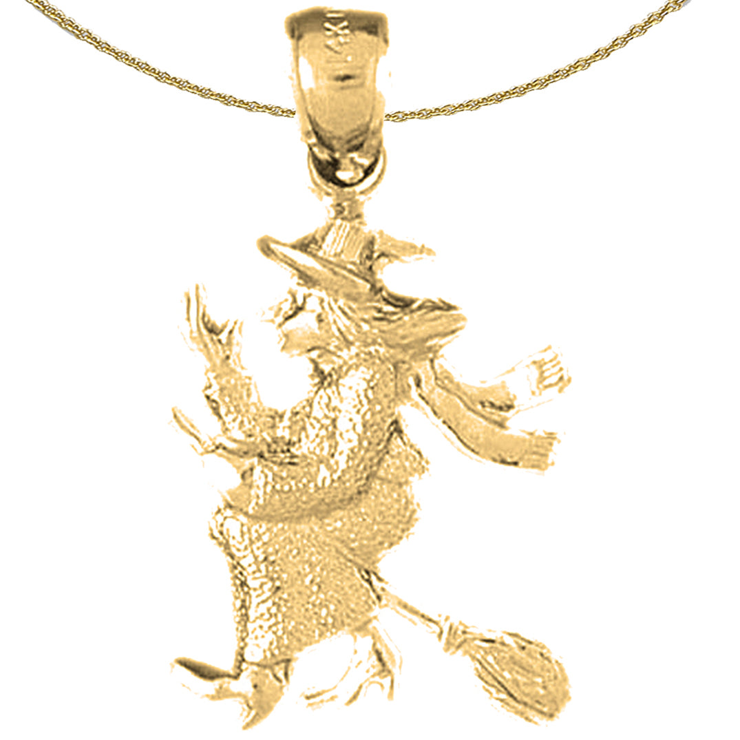 Dies ist ein wunderschöner Anhänger aus 10K, 14K oder 18K Gold mit einer Hexe auf einem Besen. Dieser Anhänger aus 10K, 14K oder 18K Gold misst 18 x 20 x 30 cm. Die Maße umfassen den Ballen. JewelsObsession stellt alle Goldschmuckstücke in unserer hochmodernen Produktionsstätte her.