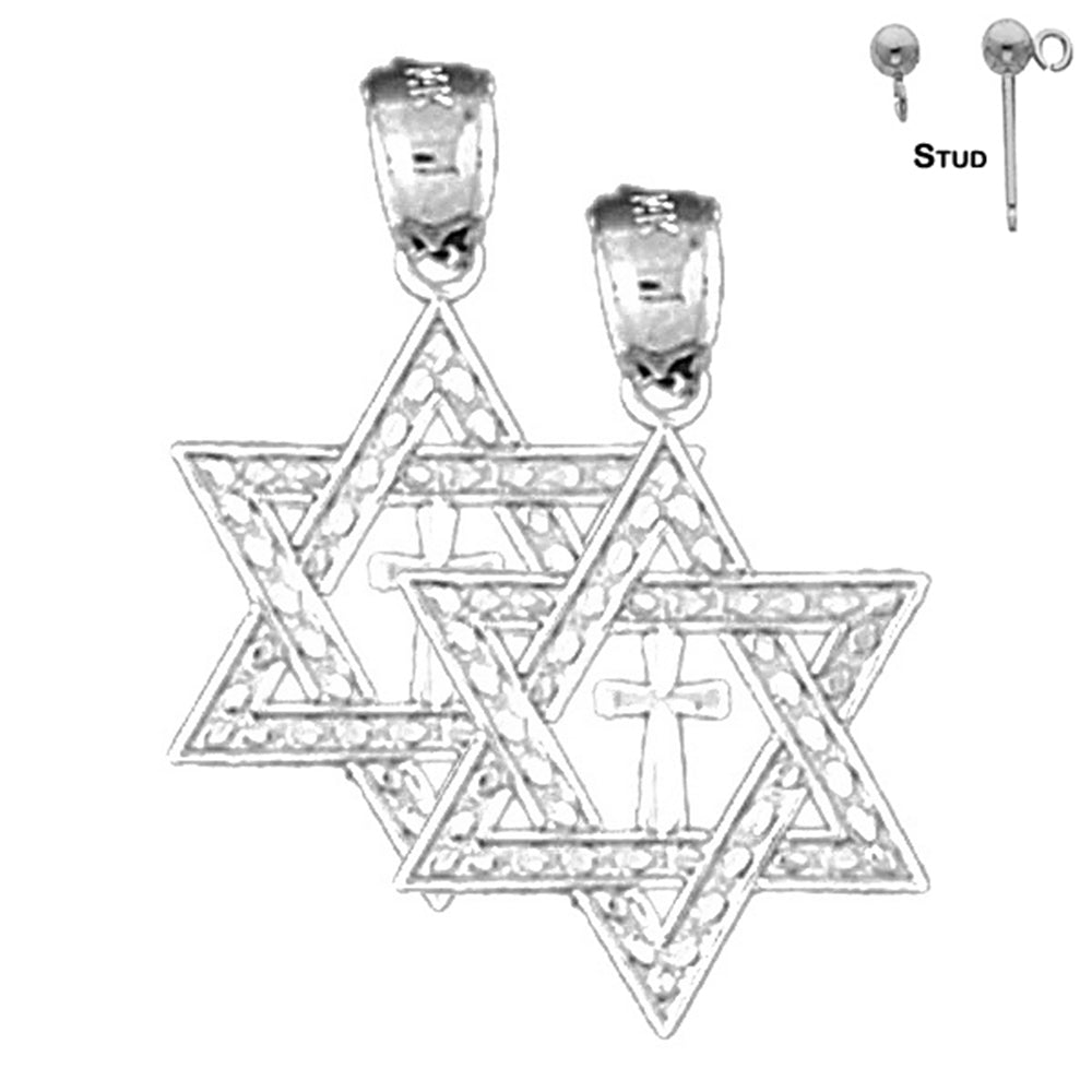 Wir präsentieren Ihnen unsere exquisiten 24 mm großen Davidstern-Ohrringe aus Sterlingsilber, die wahlweise mit Weiß- oder Gelbgoldbeschichtung erhältlich sind. Diese atemberaubenden Ohrringe sind ein wahres Symbol für Glauben und Stil und perfekt, um jedem Outfit einen Hauch von Eleganz zu verleihen.