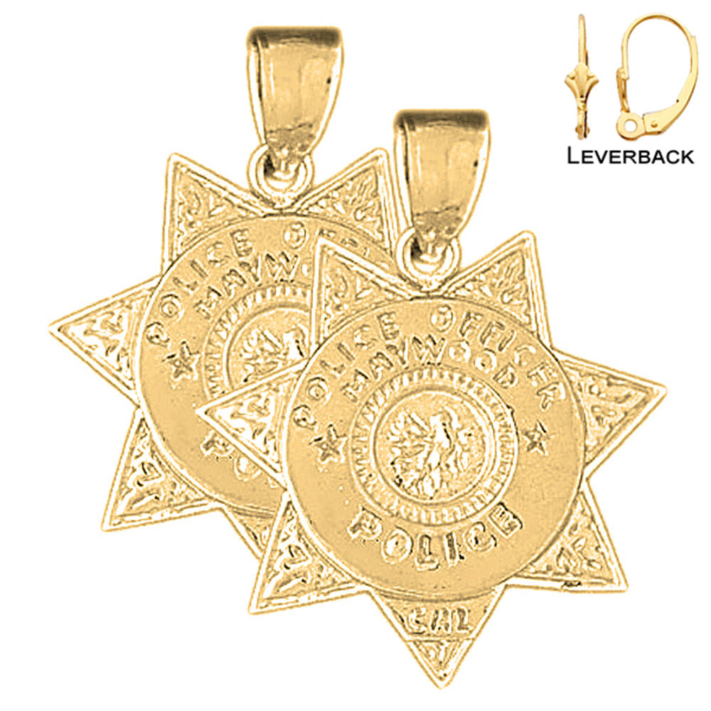 Wir präsentieren unsere atemberaubenden 29 mm großen Maywood Police-Ohrringe aus Sterlingsilber, die sowohl in Weißgold als auch in Gelbgold erhältlich sind. Diese mit äußerster Präzision und Liebe zum Detail gefertigten Ohrringe sind ein wahrer Beweis für feine Handwerkskunst.