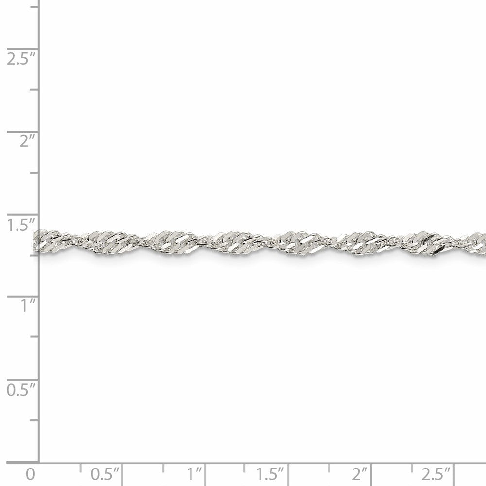 Singapurkette: Flache, dünne, diamantgeschliffene Kettenglieder werden zu einem rautenförmigen Glied verflochten. Diese Glieder werden verdreht und abgeflacht, um die Kette zu bilden. Die verdrehte Kette reflektiert Licht aus allen Winkeln und lässt sie funkeln. Auch bekannt als Sparkling Singapore und Twisted Curb.