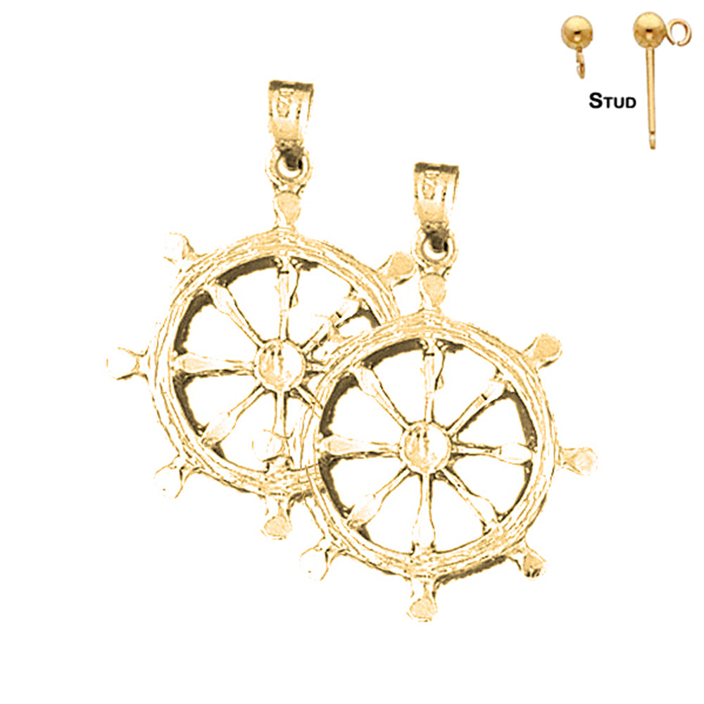 Wir präsentieren unsere exquisiten 33 mm großen Steuerrad-Ohrringe aus Sterlingsilber, ein wahrer nautischer Schatz, der jedem Ensemble einen Hauch von Eleganz verleiht. Diese mit viel Liebe zum Detail gefertigten Ohrringe sind wahlweise in Weiß- oder Gelbgold erhältlich, sodass Sie Ihren Stil individuell gestalten können.