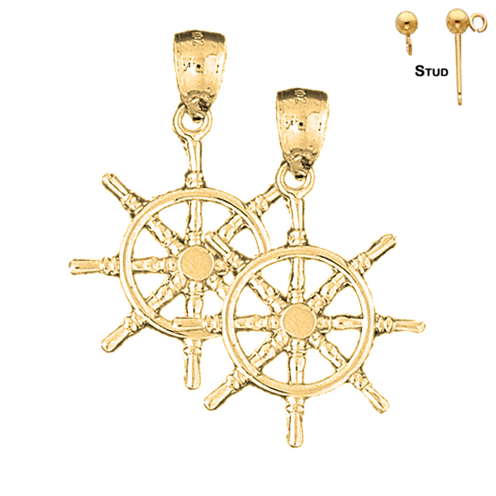 Wir präsentieren Ihnen unsere exquisiten 35 mm großen Steuerrad-Ohrringe aus Sterlingsilber, die wahlweise mit Weiß- oder Gelbgoldbeschichtung erhältlich sind. Diese mit höchster Präzision gefertigten Ohrringe sind ein wahres Zeugnis feiner Handwerkskunst und Liebe zum Detail.