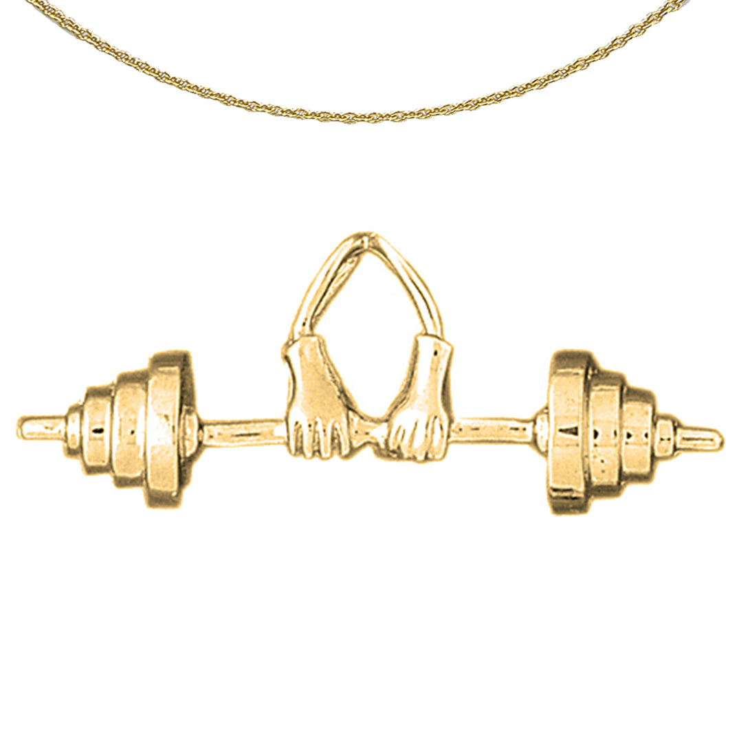 Yellow Gold-plated Silver 3D Barbell Pendant