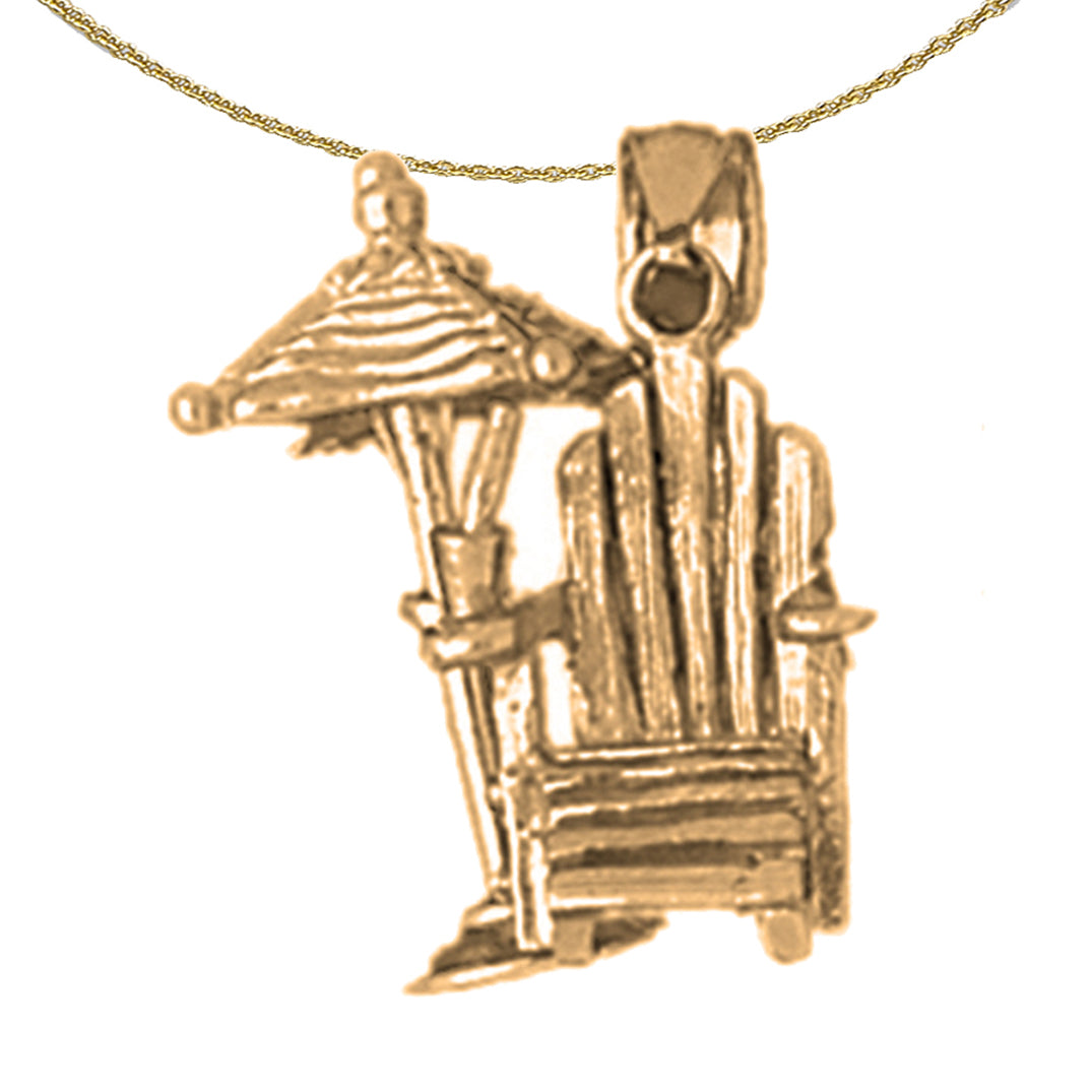 3D-Anhänger „Strandstuhl und Sonnenschirm“ aus Sterlingsilber (rhodiniert oder gelbvergoldet)